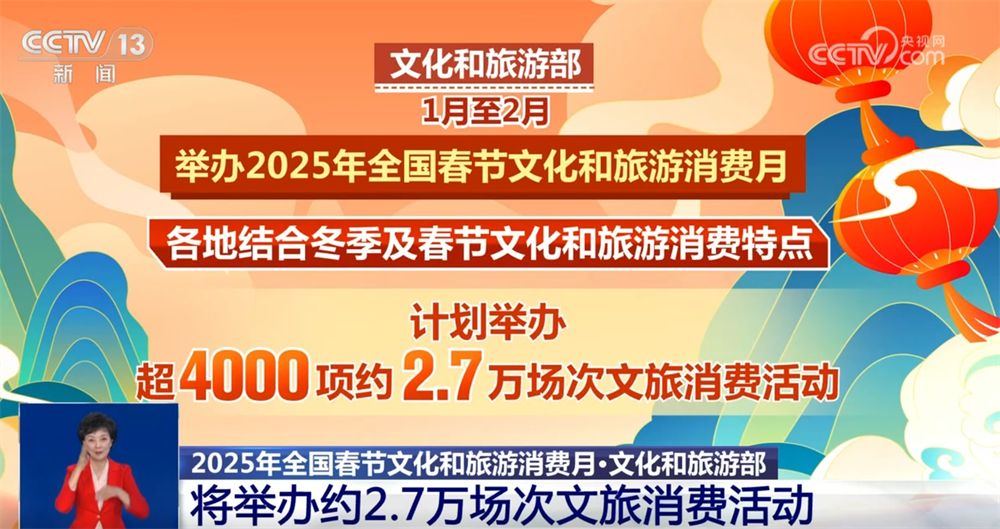 1月28日就是除夕了,您的春节假期打算怎么过?是去大自然里感受山水美景?还是去博物馆中领略传统文化?相信不少人已经有了丰富的安排。目前全国各地都在举办丰富多彩的文旅活动,如果您还没想好怎么过大年,我给您来点儿提示。首先,文化和旅游部于1月至2月举办2025年全国春节文化和旅游消费月,各地结合冬季及春节文化和旅游消费特点,计划举办超4000项约2.7万场次文旅消费活动。