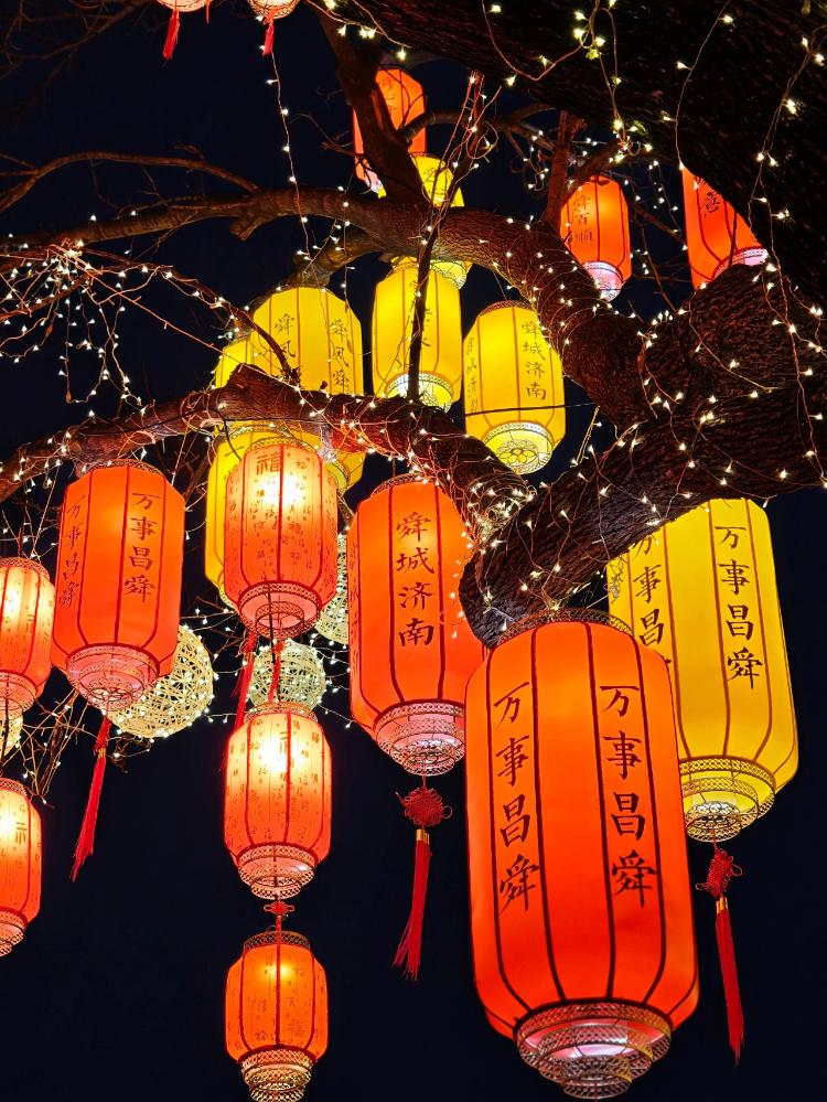 英雄山风景区工作人员依据树木的不同形态,精心设计灯笼悬挂位置,使其高低错落、疏密有致。夜幕降临,灯光亮起,为景区增添了浓厚而独特的节日喜庆氛围,让游客在游览过程中充分领略到传统节日的独特魅力。