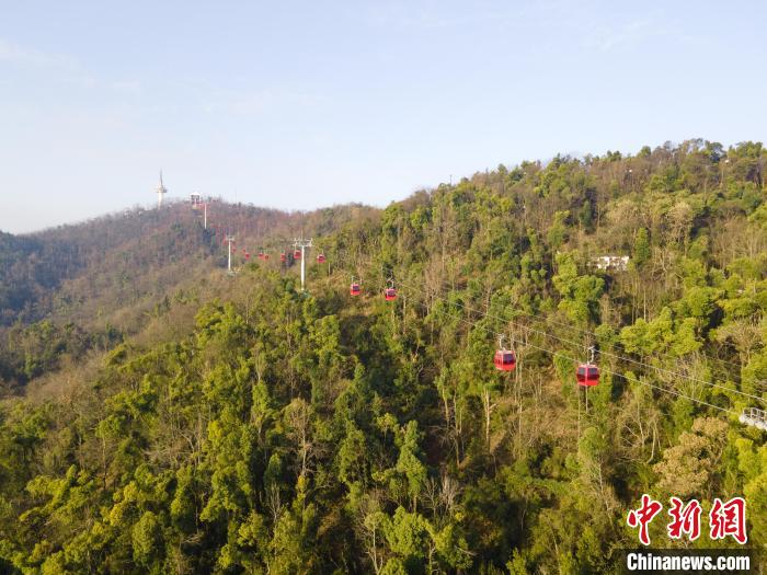 中新网长沙1月27日电 (刘曼)1月27日,长沙岳麓山新索道启动试运行,这条焕然一新的“空中之路”吸引众多市民游客前来体验。