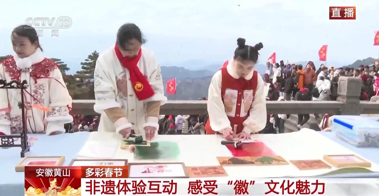 这个假期来登山的游客发现,今天的黄山风景区充满了年味 ,大家在观景的同时,还可以欣赏各种非遗表演。