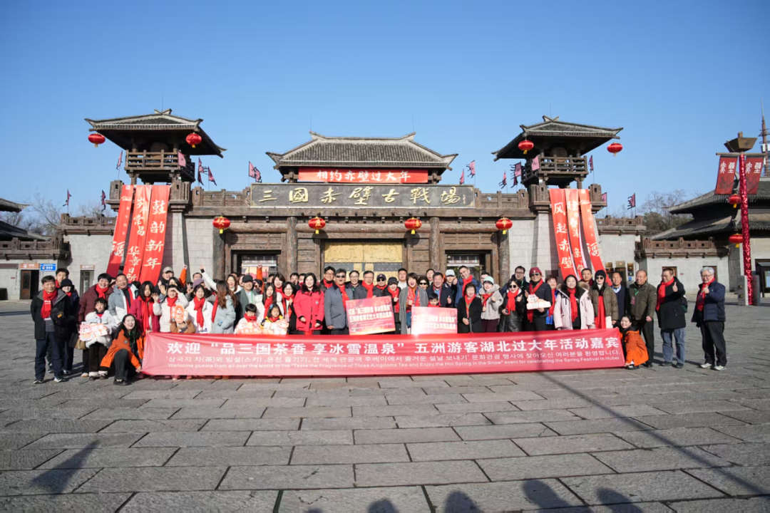 春节前夕,由咸宁市文旅局、咸宁市外事办指导,赤壁市文旅局主办的2025“品三国茶香 享冰雪温泉”五洲游客湖北过大年活动举行,吸引了来自美国、韩国、爱尔兰、亚美尼亚等国家的50余名游客来咸沉浸式体验咸宁之美,欢度新春佳节。