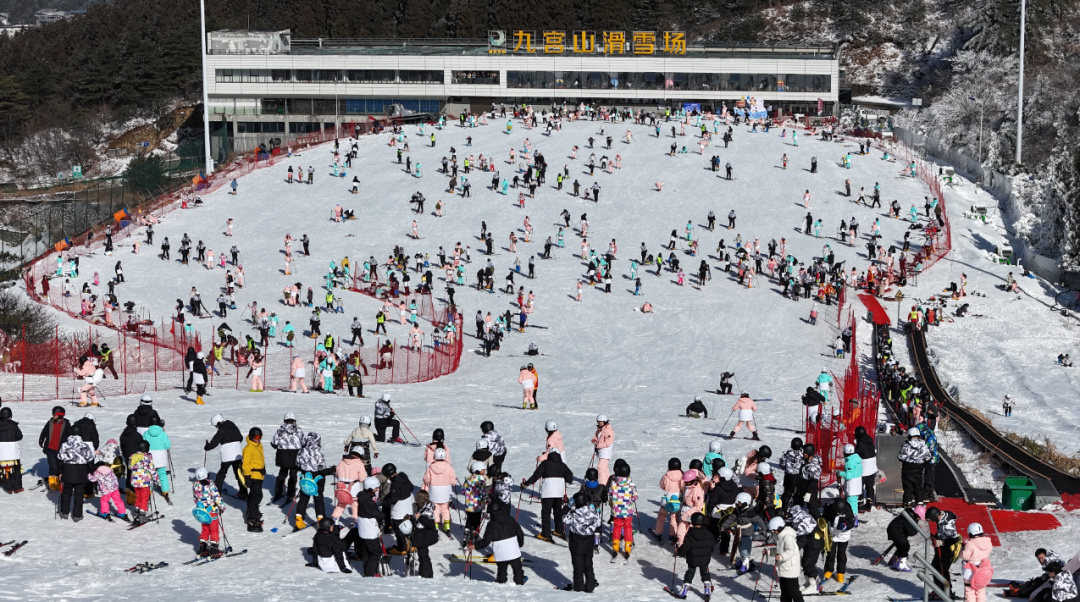 在际华冰雪·香城滑雪馆,不少来自周边省市的游客慕名而来,冬季亲子趣味营、大众冰雪嘉年华等活动为滑雪更添趣味。九宫山风景区则以高山滑雪场为核心,设置六大主题体验区,让游客感受冰雪与自然美景交织的乐趣。两大滑雪场每日都能吸引数千名游客前往游玩。