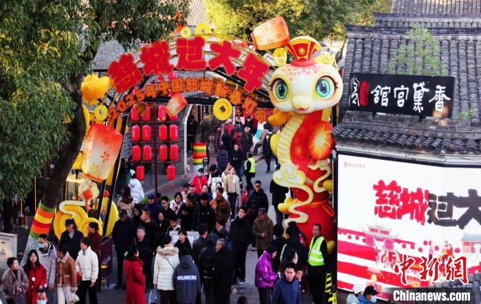中新网宁波2月1日电(董易鑫卓璇金贤芳)灵蛇献瑞迎新岁,慈城古韵贺佳节。连日来,浙江省宁波市江北慈城古县城开启了精彩纷呈的“慈城过大年”庆典活动。除夕到大年初二,慈城游客人数累计突破24万人次,创历史新高。