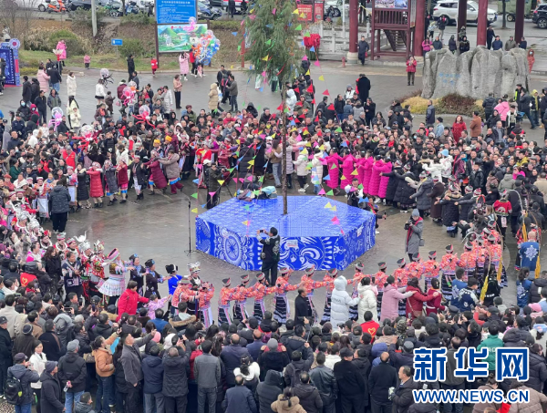 2月6日,三合苗寨苗族跳花节上的跳花场。新华网发