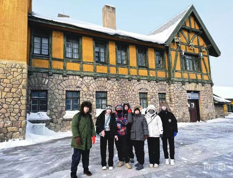周秀华一家在阿尔山火车站打卡留念(央广网发 受访者供图)
