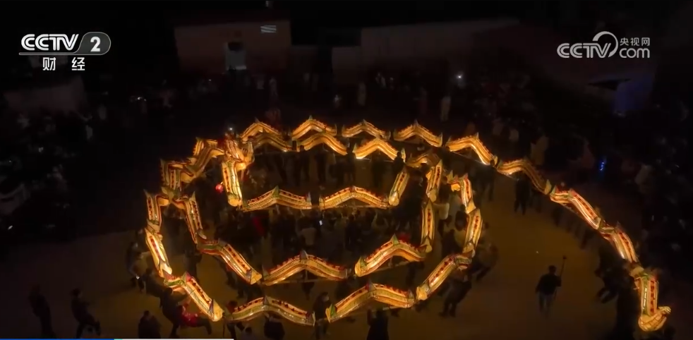 今年碗窑村的这条碗板龙共有35节,上百名村民踩着节奏将龙的游走、腾翻、穿越等动作神态一一展现。其中,“团龙”是碗板龙的压轴大戏,在“龙头”的引领下,龙身以圈盘绕成螺旋状,头尾呼应,寓意着圆满团圆。