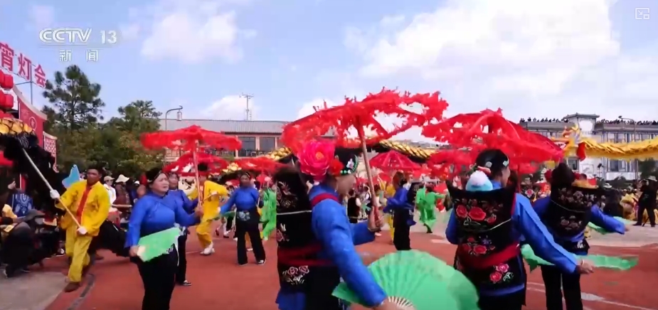 在云南大理弥渡,元宵闹花灯,每个村都会自发组成灯班,参与演出的人员达数千人。