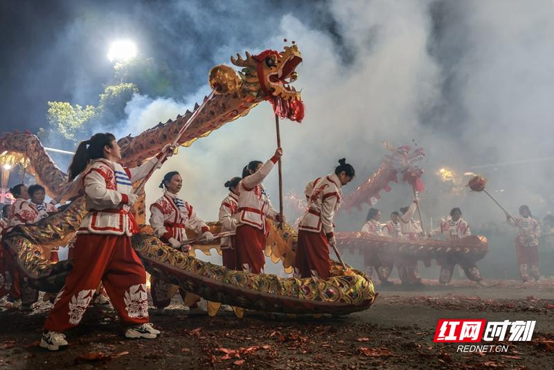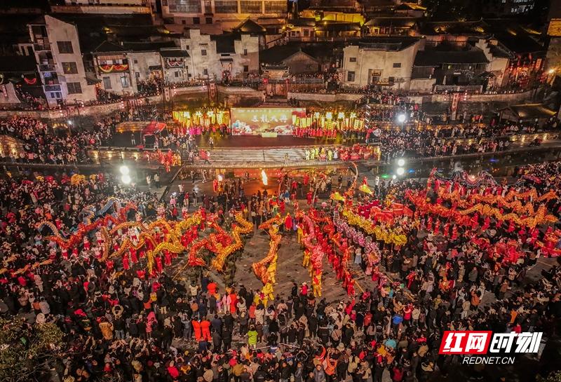 红网时刻新闻怀化2月12日讯(通讯员 袁春华 林振林 摄影 黄文胜 郭承皓)2月12日,正月十五元宵节,“元宵喜送龙”活动在湖南省怀化市洪江古商城盛大举行,数十条龙狮再次齐聚,通过“烧龙”“过火”等程序,用传统的方式送龙飞升,吸引了众多市民和游客前往观看,充满民俗风情的文化盛宴精彩上演。