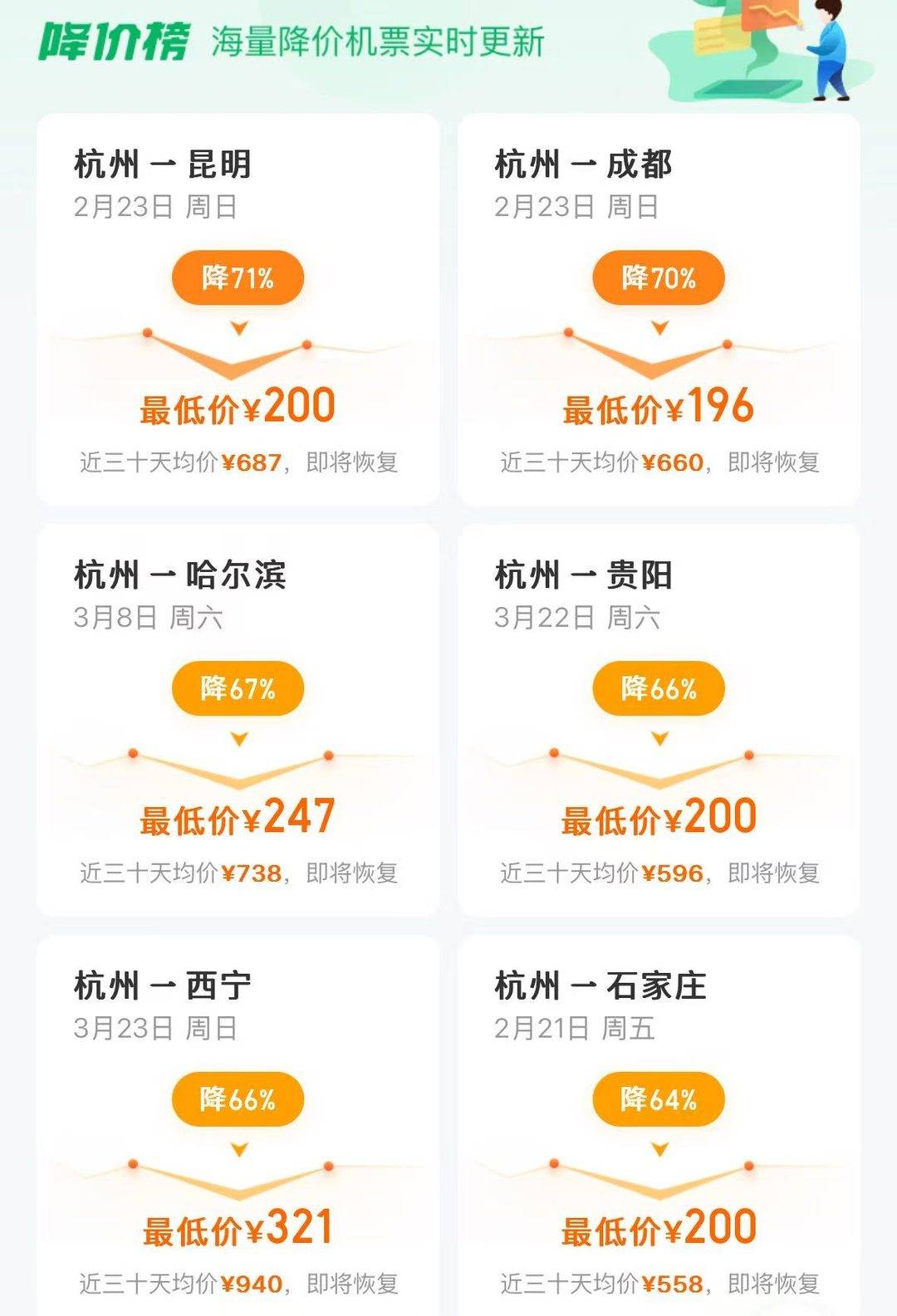 2月18日,记者从多家OTA平台了解到,即日起至3月底,国内国际机票价格较春节假期均有不同程度回落,部分热门航线机票价格甚至下降至0.7折。国内酒店价格也在元宵节后回到常态价格。