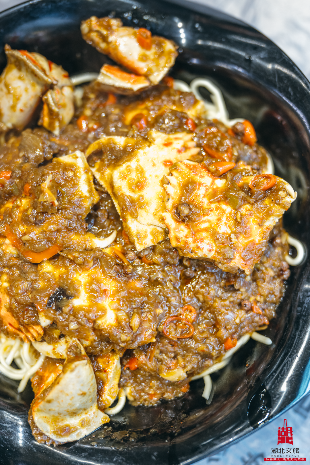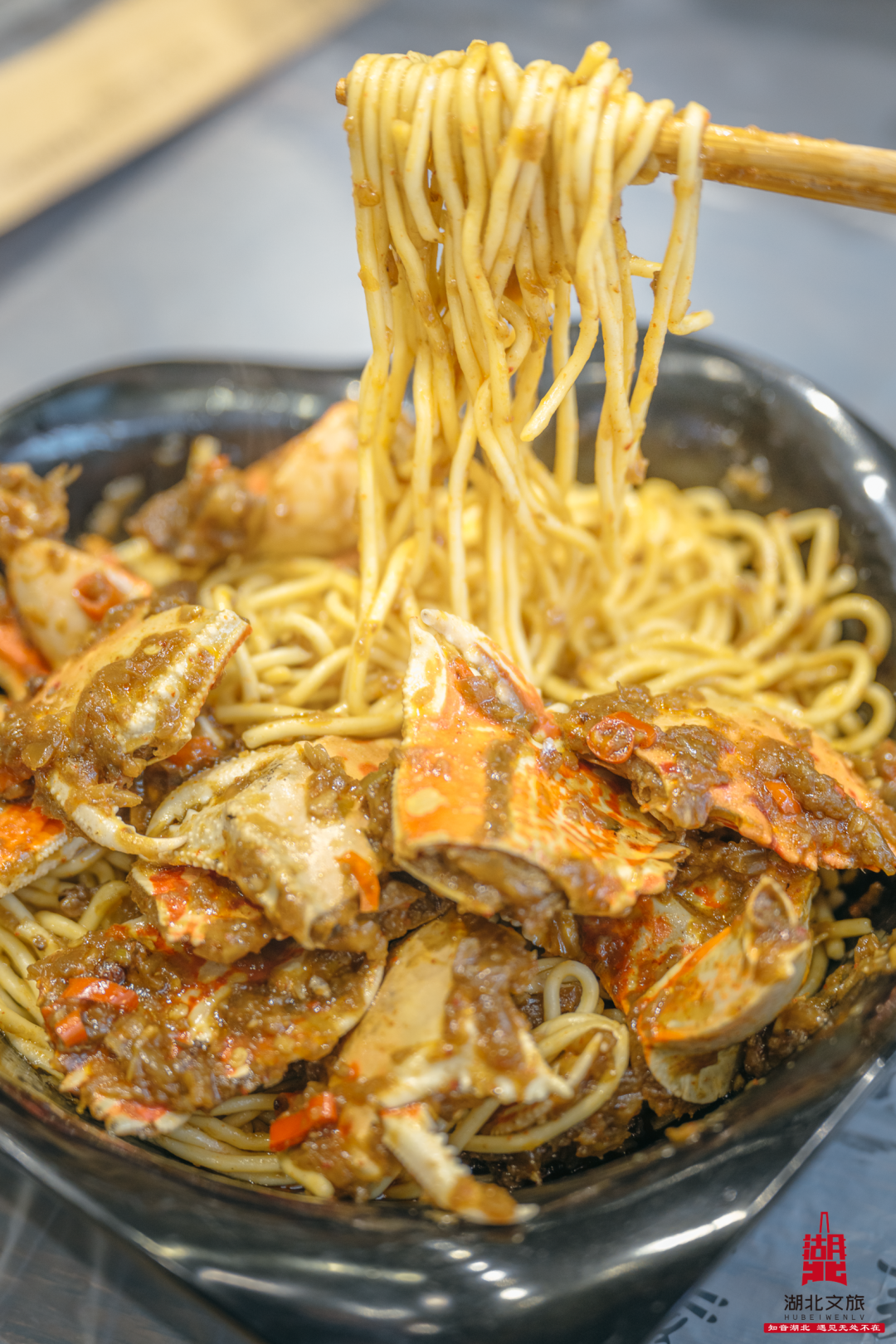 而蟹脚面,以湖北优质螃蟹为原料,蟹脚饱满,蟹肉鲜嫩。香辣的汤汁包裹着爽滑劲道的面条,轻轻一吸,蟹肉脱壳而出,浓郁的蟹香与香辣的味道交织,让人欲罢不能。