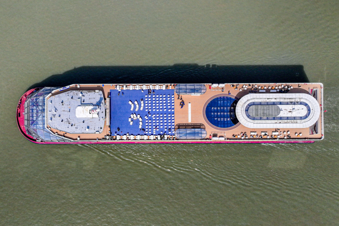哦,不对,重来——它岂止是一艘游船,更是一座巨大而炫酷的“江上客厅”。