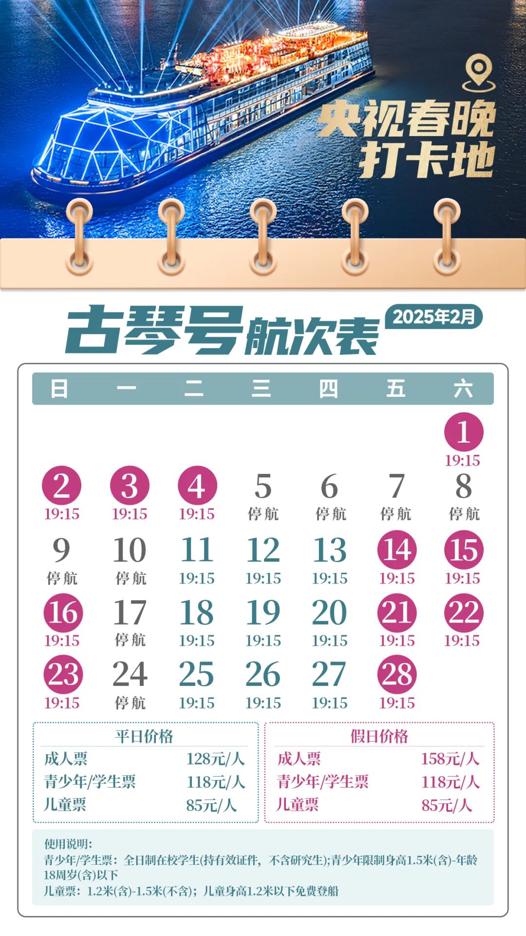 遇见春晚同款名场面,打卡无眠的江上派对,这份玩转“古琴号”攻略,将承包你对江城夜色所有的浪漫想象。