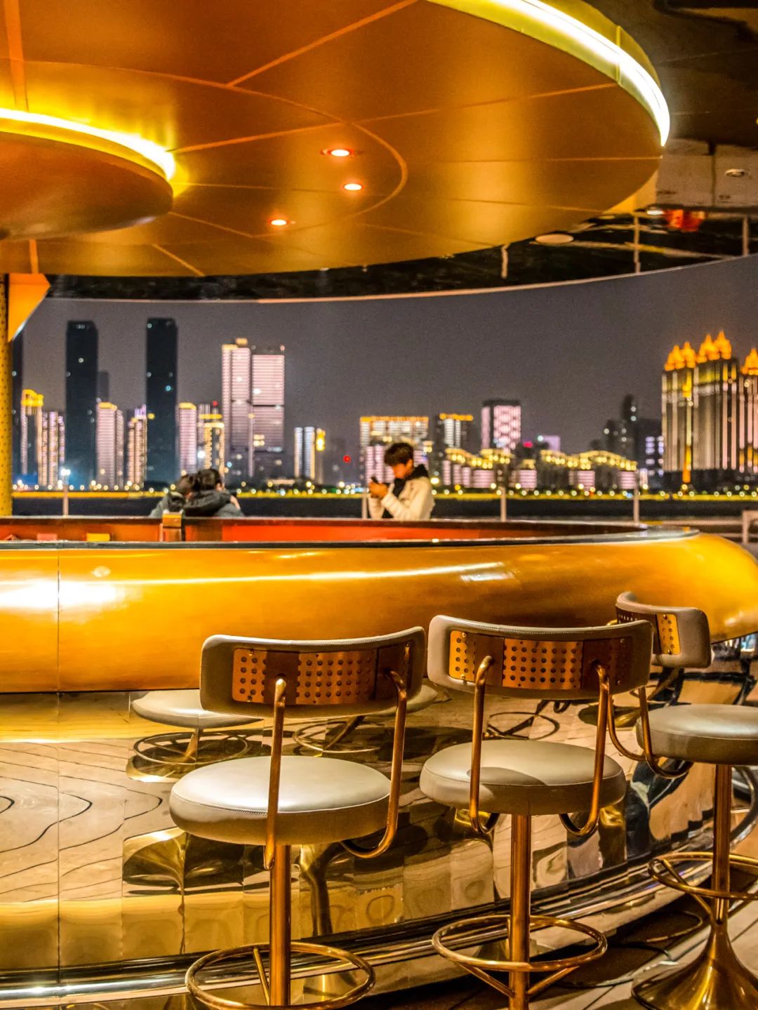 而在顶层露天甲板,你会更真切地感受到“古琴号”的“阔”。真360露天观景台,秀场级的光影组合,正是感受江城壮阔的绝佳出片地。