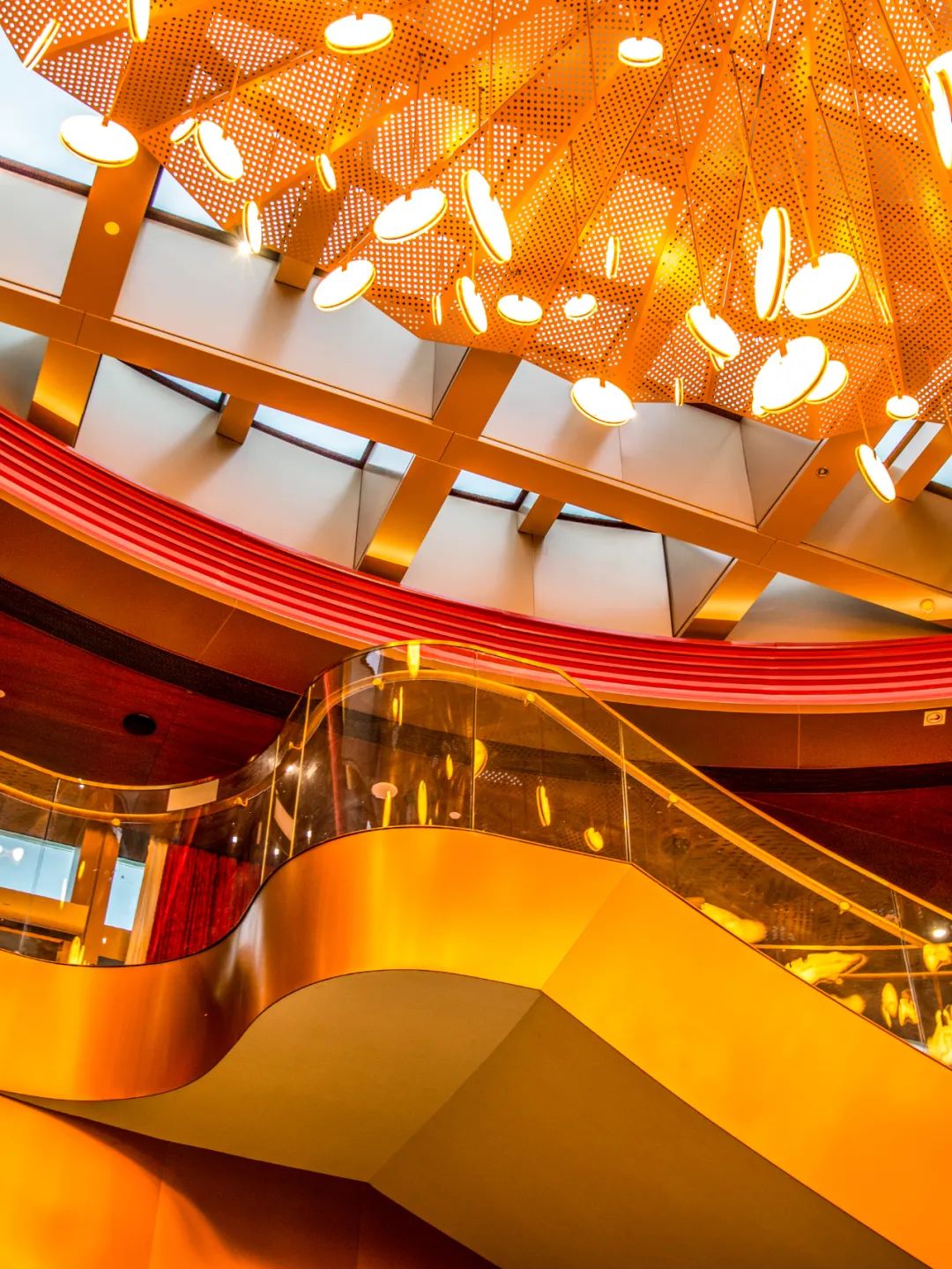 踏入一楼大厅,像走进一座金碧辉煌的“水晶宫”。
