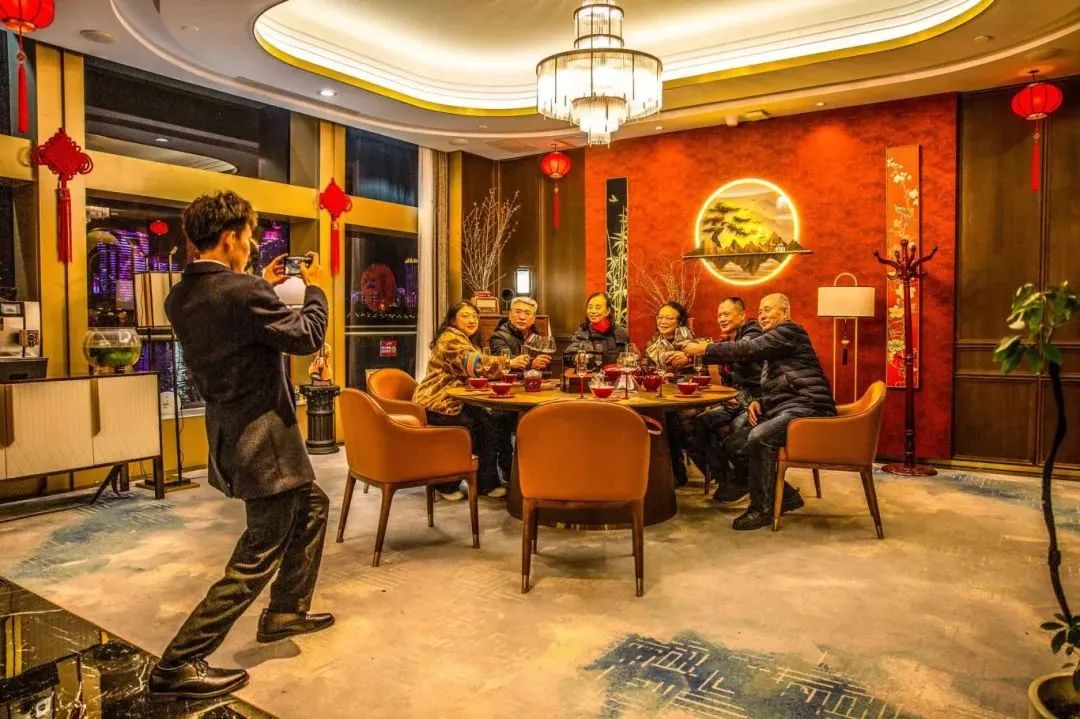 窗外江景为幕,房中喜气洋洋,美美发个朋友圈:“在长江上吃到朱一龙同款年夜饭”,等着获赞满满吧。