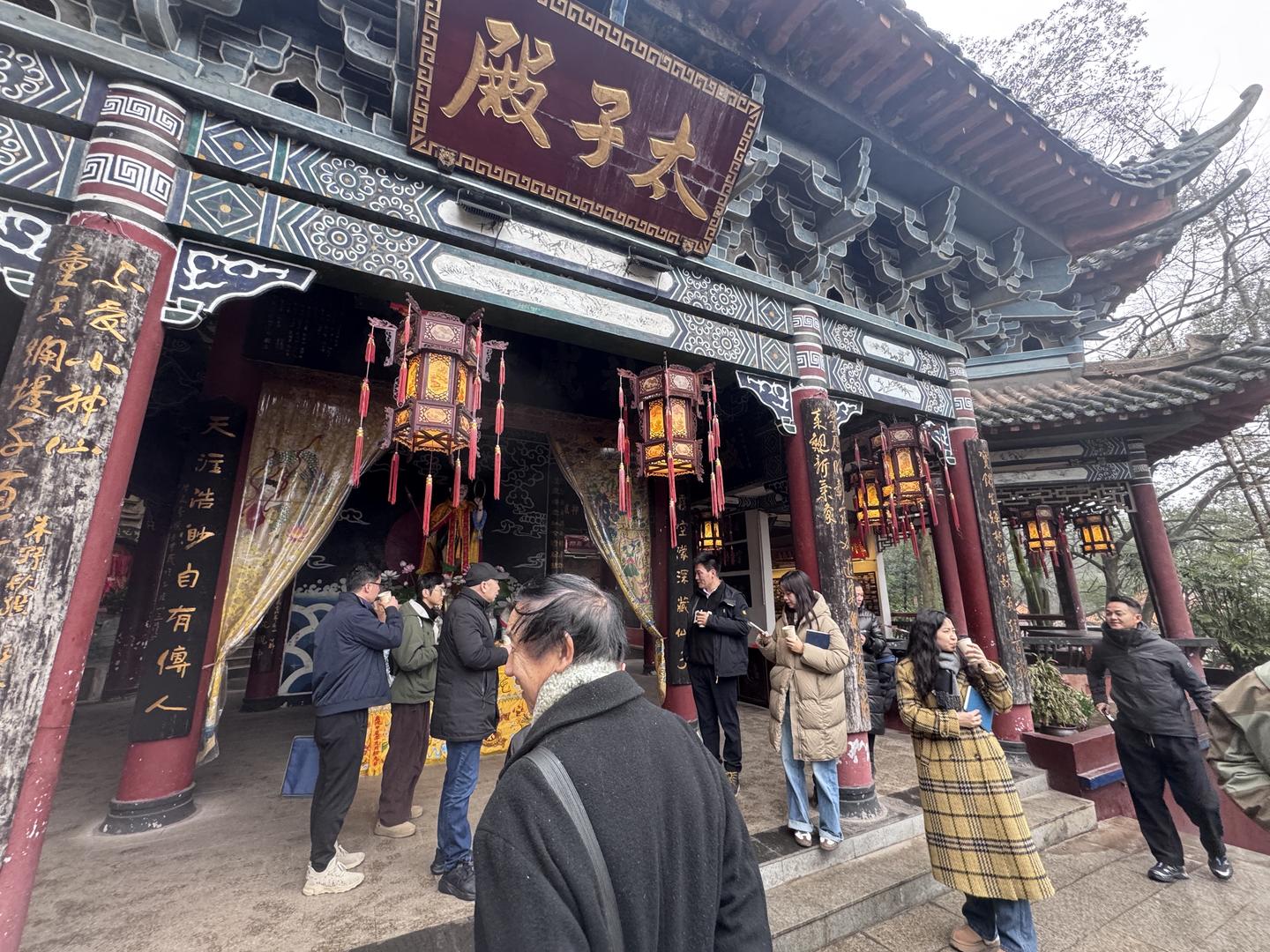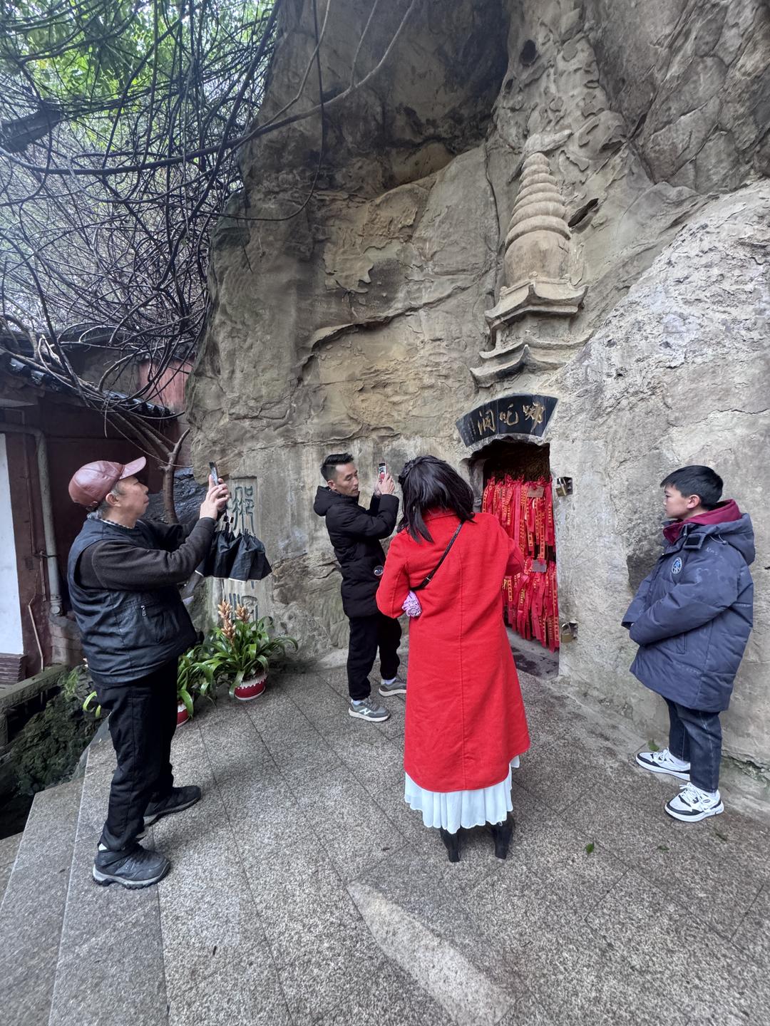 2月21日上午,四川宜宾翠屏山一直下着小雨,天气仍有些冷,但低温天气抵挡不住游客前往翠屏山“哪吒行宫”参观的热情。云南曲靖一家人在看完自贡灯会后,特意在返回时来到宜宾“哪吒行宫”游览,“哪吒太火了,听说哪吒唯一祖庙在四川宜宾,所以我们特意过来看看。”