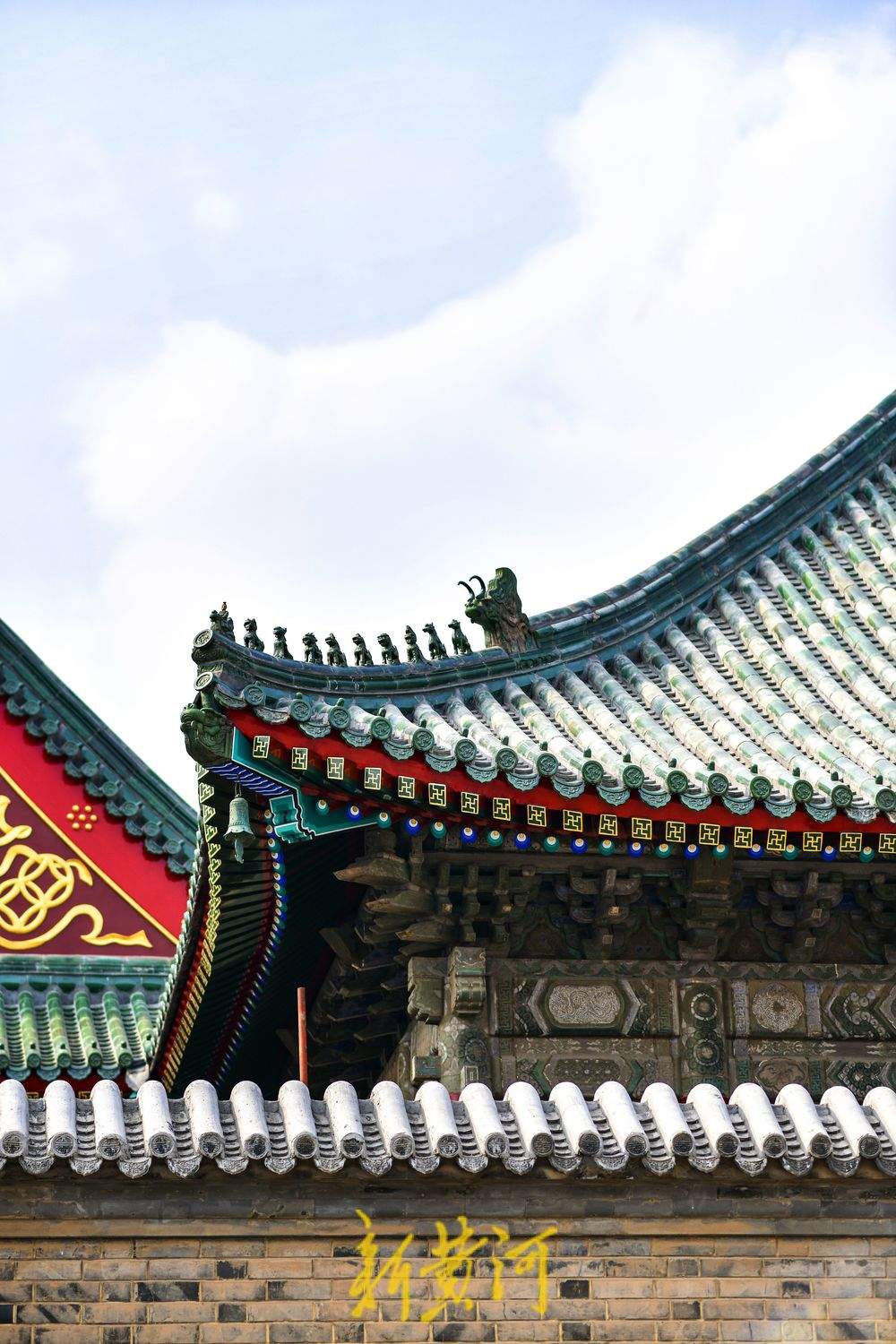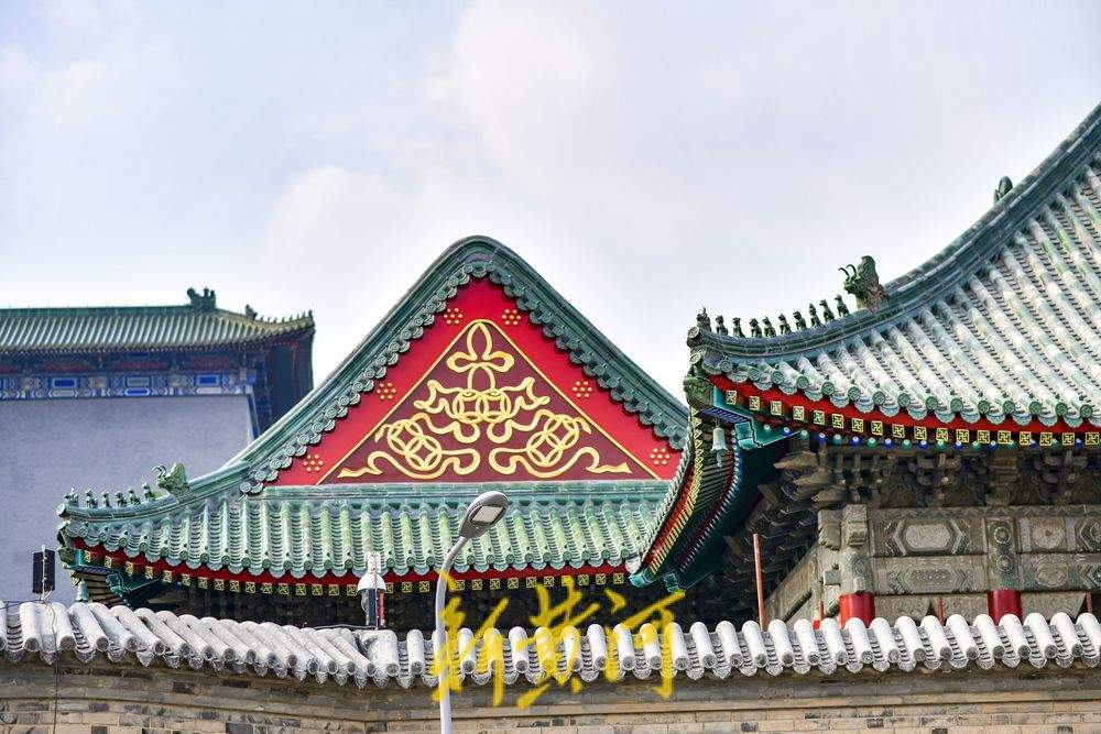 万字会旧址济南母院是济南近现代建筑中规模最大的仿古建筑群,站在上新街隔墙望去,绿琉璃瓦屋面、红色的木制结构和金色的彩绘,在阳光的照射下散发着绚丽的色彩,与改造一新的上新街历史文化街区融为一体,更加凸显百年老街的古韵气息。