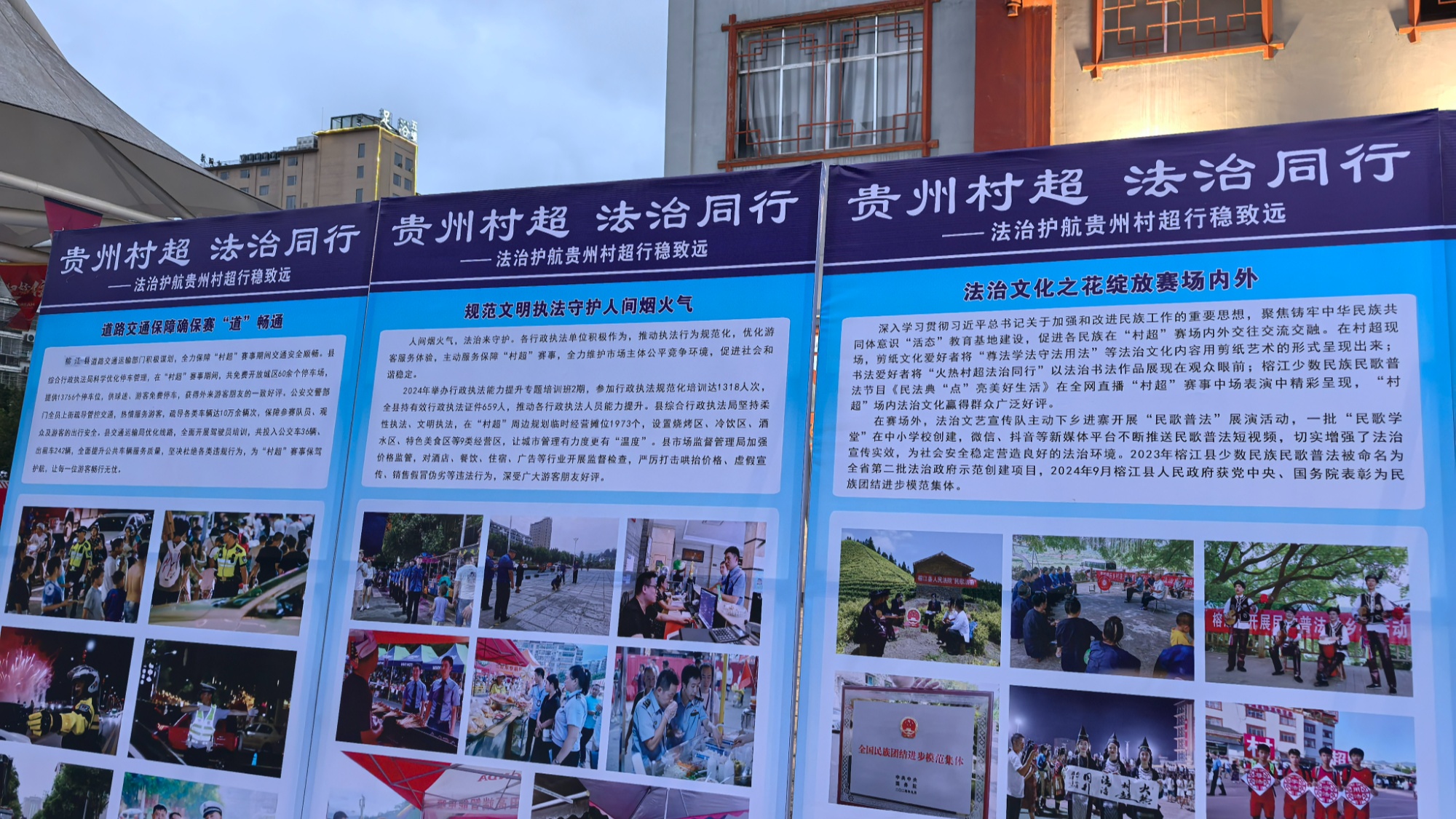 自“村超”火爆以来,榕江迎来了大量游客,赛事的影响力不断扩大,也为普法工作带来了新的契机。榕江充分利用“村超”的大流量,创新普法形式,将“村超”球场打造成普法新阵地。