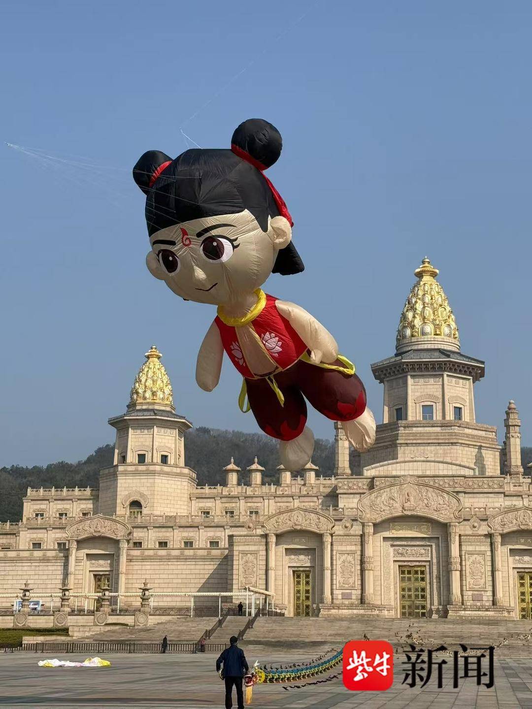 巨型风筝——“哪吒”在灵山景区起飞