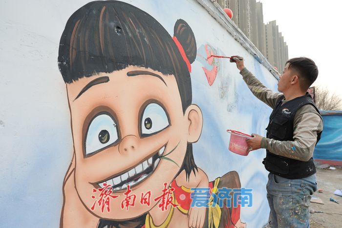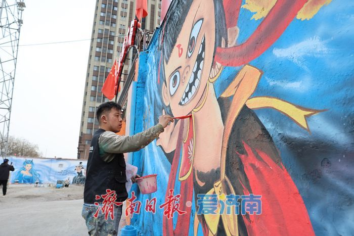近日,在济南市天桥区无影山北路上,一面40米长的水泥墙焕然一新,哪吒等动漫形象栩栩如生、跃然眼前,引得过往市民纷纷驻足观赏、拍照打卡。大家在得知这面涂鸦墙是出自聋人墙绘师庞治才之手后,无不赞叹,纷纷竖起大拇指。