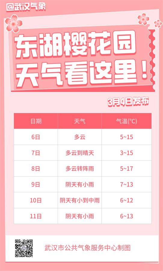 湖北日报讯(记者汤炜玮、通讯员陈声超)3月4日从武汉市气象局获悉,根据最新天气预报分析,今天白天武汉市阴天到多云,南部有短时小雨;