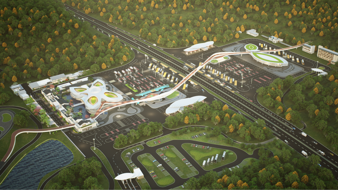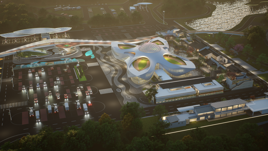 广东省首个主打荔枝文化特色服务区柏桥服务区的规划设计效果图。