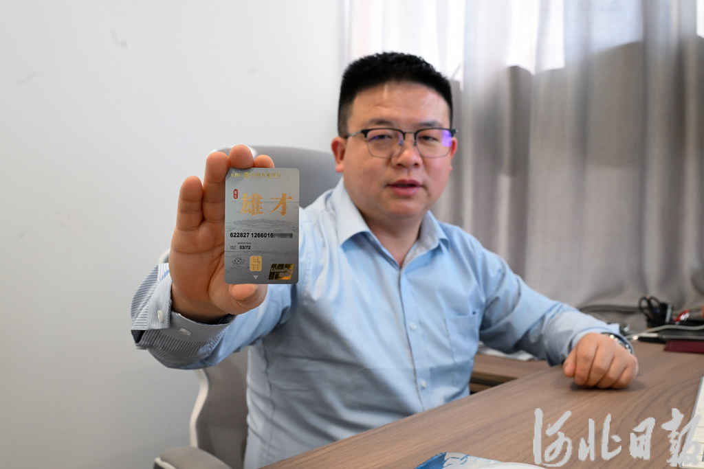 2月27日,雄安妙心生物科技有限公司副总经理王芳军展示其领取到的“雄才卡”。为更好服务各类人才,雄安新区推行“雄才卡”常态化申领。河北日报记者田明摄