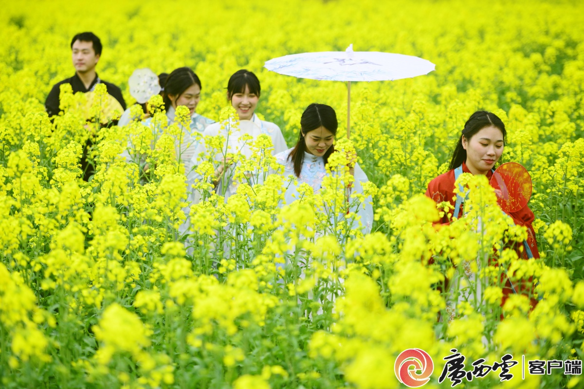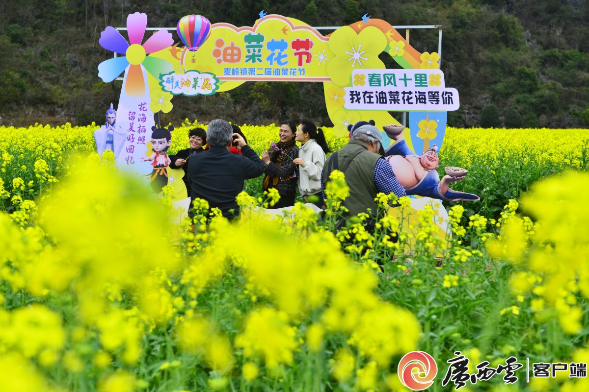 在该县麦岭镇第二届油菜花节开幕当天,广褒的田野成为花的海洋,来赏花踏春的游客络绎不绝。第二次来参加油菜花节的贺州摄影师龚富仁开心地说,富川民俗活动丰富,古民居保持良好,还有非常诱人的“黑狗粑粑”“糖油粑粑”等美食,下次还要介绍更多亲朋好友来。