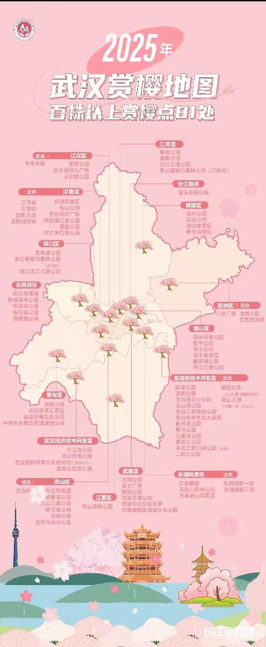 武汉全市张开双臂欢迎各方游客到来。户外大屏、机场高速、地铁站点,我们正在陆续刊登赏花海报,设置打卡点、打卡装置、美景和造景光谷广场、武商集团各大商场、东西湖商圈已经布置了各种实景樱花树。东湖蓝图、滴滴等企业将推出统一涂装的赏樱免费专车、樱花网约车、长江灯光秀上演新的樱花专辑。赏樱点景区街区商圈联动,游客将切身体会到浪漫武汉一路生花。