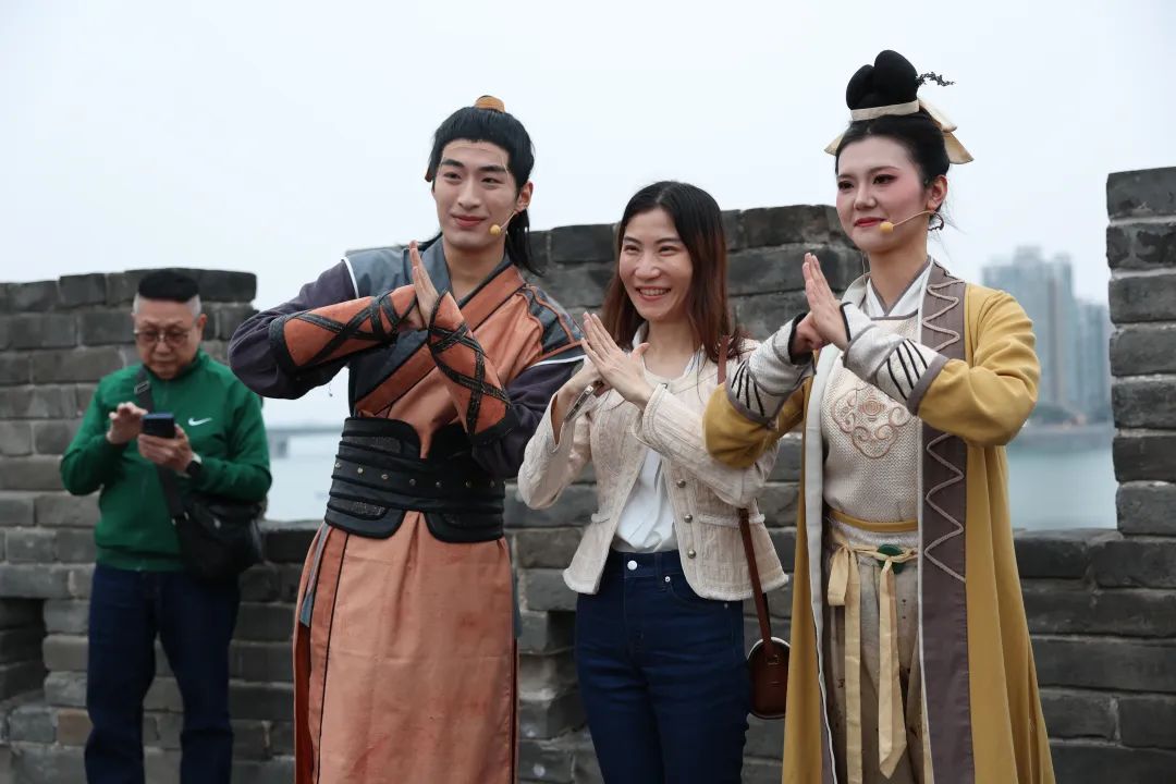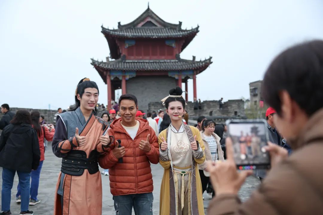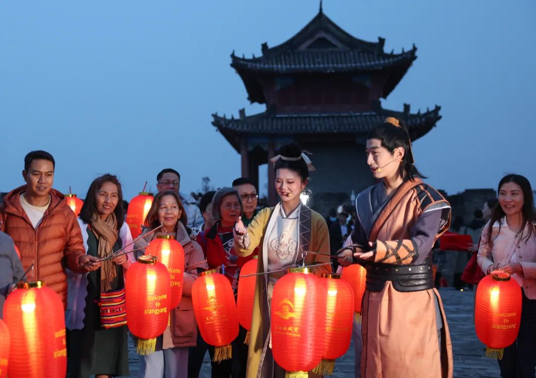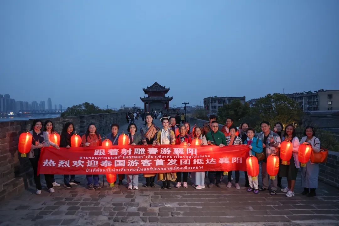 当天下午,泰国游客纷纷登上古城墙,回味传奇武侠中的侠义襄阳。特别是当“郭靖”“黄蓉”亮相后,游客们纷纷摆出各种造型与演员合影,夜幕降临,泰国游客手提灯笼,与“郭靖”“黄蓉”一起守护襄阳城,亲身体验金庸笔下的经典故事。