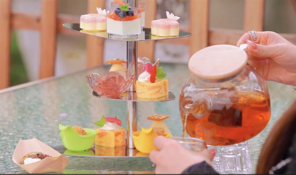 外地游客在酒店品尝樱花季下午茶(供图:武汉晴川假日酒店)