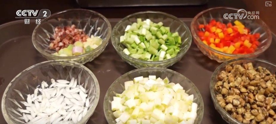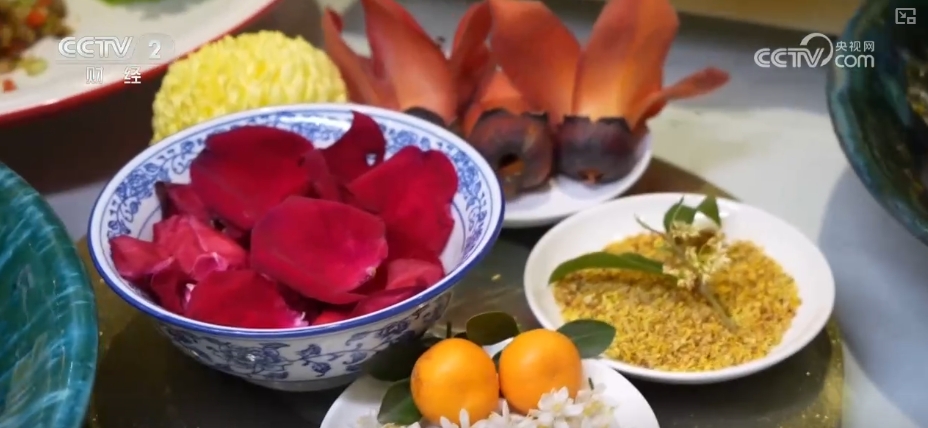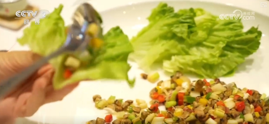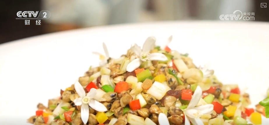 在佛山顺德区的一家酒楼,粤菜师将刚刚吐露芬芳的桔花采摘下来,准备制作特色时令菜蚬肉生菜包,这道菜的特点是“生熟同吃”。将蚬肉搭配荞菜、韭菜、腊味等配料炒制,然后包上生菜,寓意着“生财有道”的美好祝愿。