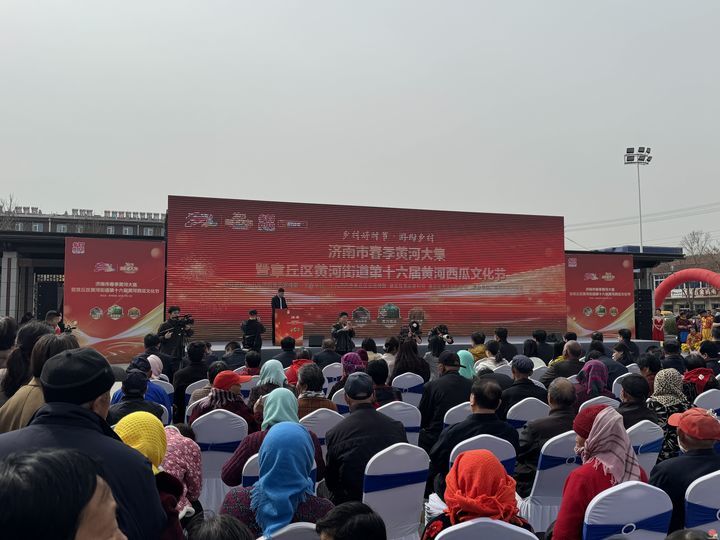 2025年3月23日上午,以“春聚黄河畔,瓜香满天下”“来章丘黄河,赶黄河大集”为主题的“乡村好时节•游购乡村”济南市春季黄河大集暨章丘区第十六届黄河西瓜文化节在黄河街道隆重开幕。作为沿黄九省唯一以“黄河”命名的行政单位,章丘区黄河街道依托得天独厚的生态资源与深厚的农耕文化底蕴,以西瓜产业为纽带,打造出一场集文化展演、产业合作、线上赋能、民俗体验、生态休闲、文明实践、美食品鉴、手造展示于一体的乡村振兴盛会,展现黄河文化的深厚底蕴与乡村振兴的蓬勃活力,吸引千余名游客、群众齐聚现场,共襄盛举。