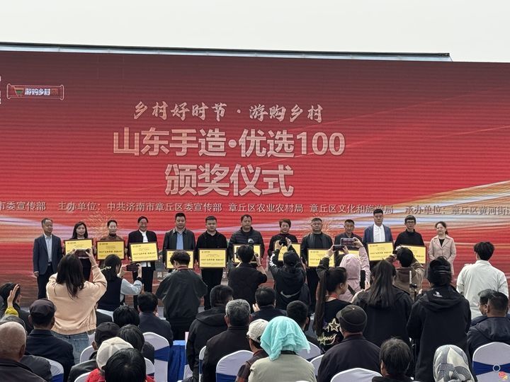 活动以气势磅礴的《黄河鼓韵》开场舞拉开序幕,随后《我们的新时代》《黄河水从我家门前过》等文艺节目轮番上演,将现场气氛推向高潮。仪式上,“山东手造·优选100”章丘入选企业获颁荣誉奖牌,彰显传统工艺与现代创新的融合成果,为手造产业升级注入创新动能;聘任黄河文化、西瓜种植技术、鲤鱼养殖等领域顾问,颁发顾问聘书,构建产学研协作生态;为黄河西瓜、鲤鱼、大米等产业协会联盟授牌,推动“黄河好品”品牌化、标准化发展,加速特色农产品迈向全国市场。济南市农业农村局向黄河街道赠送15万尾黄河鲤鱼鱼苗,助力生态保护与产业振兴双轨并行。