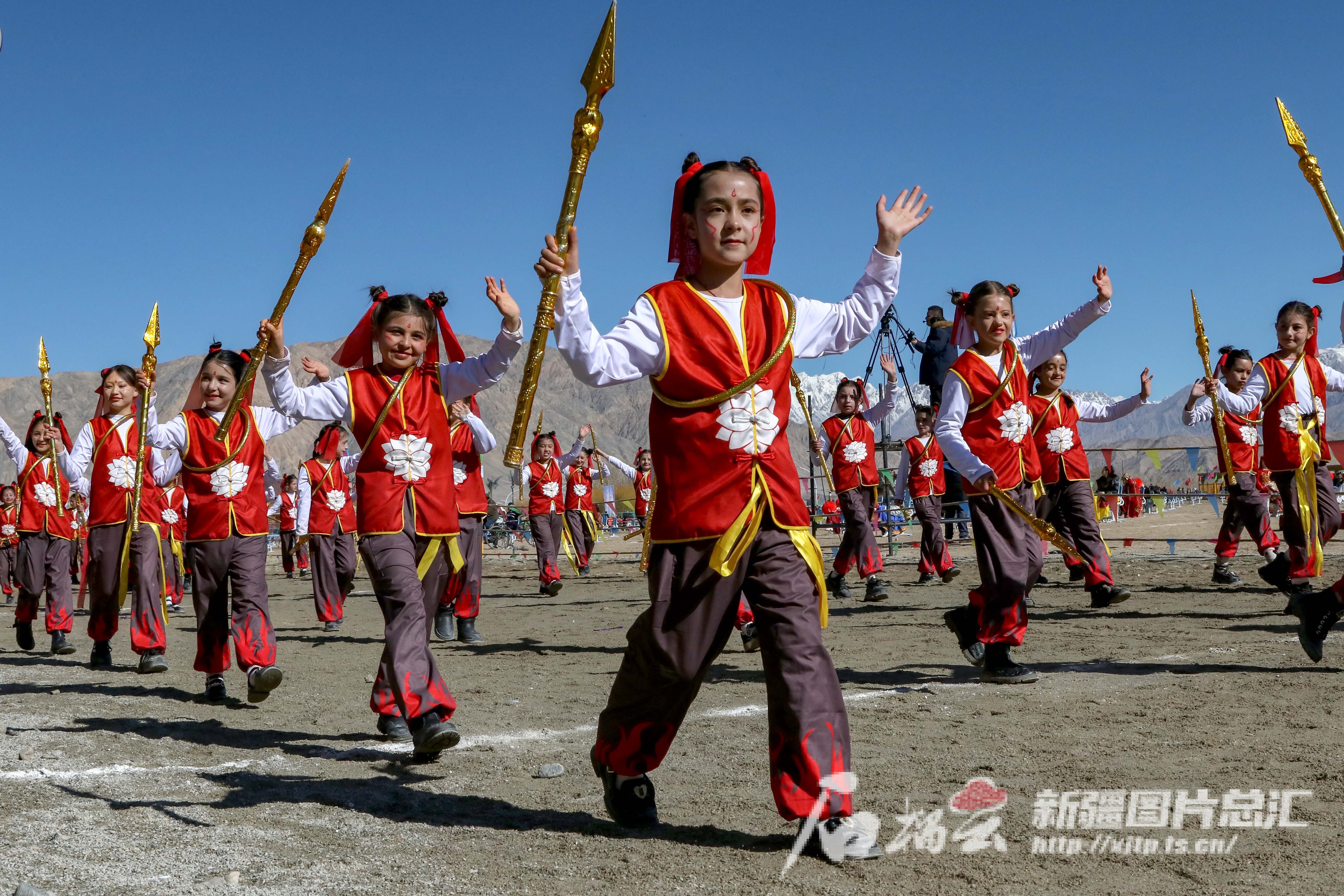 3月23日,塔什库尔干塔吉克自治县非物质文化遗产展示园(提孜那甫乡赛马场),由小朋友扮演的哪吒方队展示。