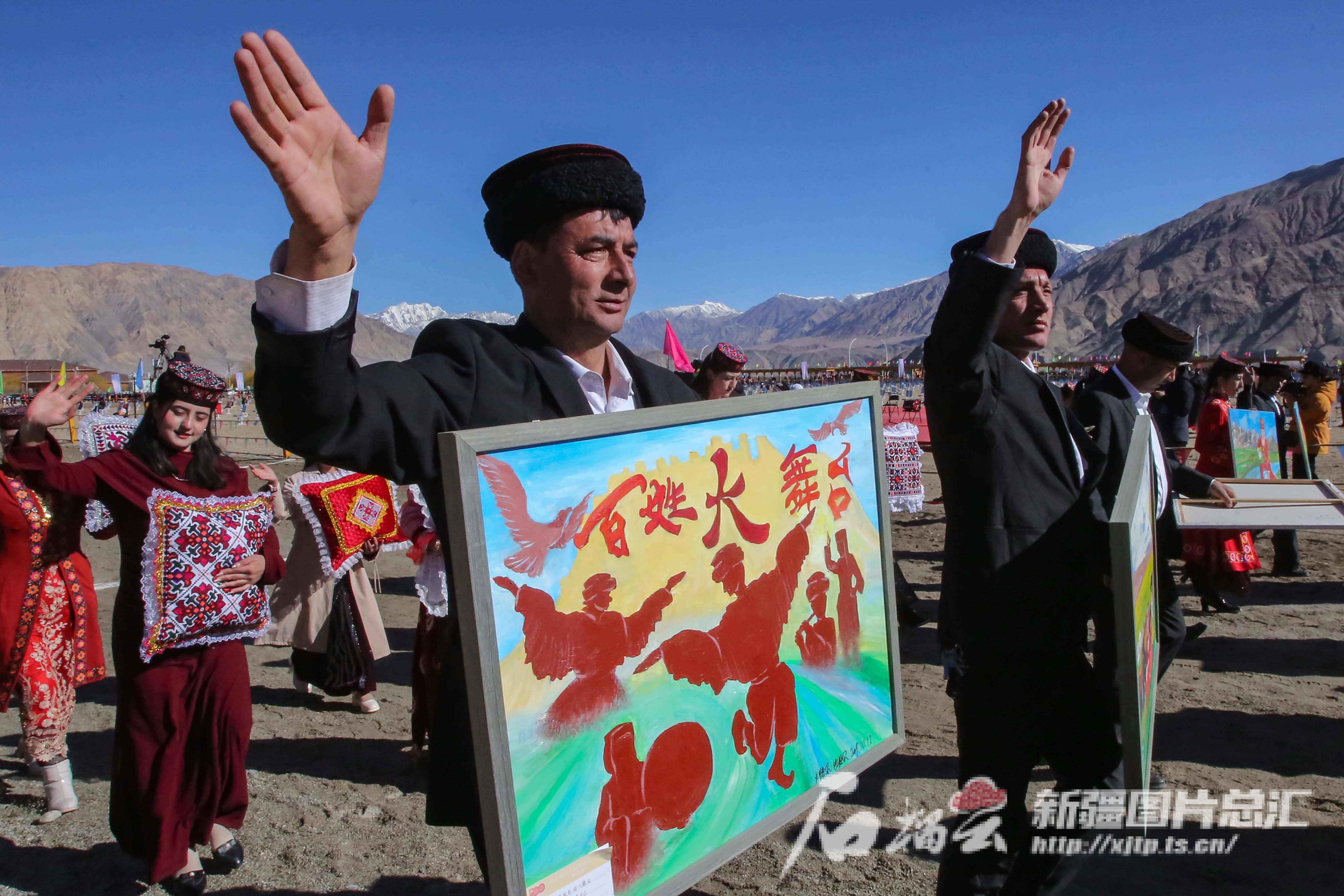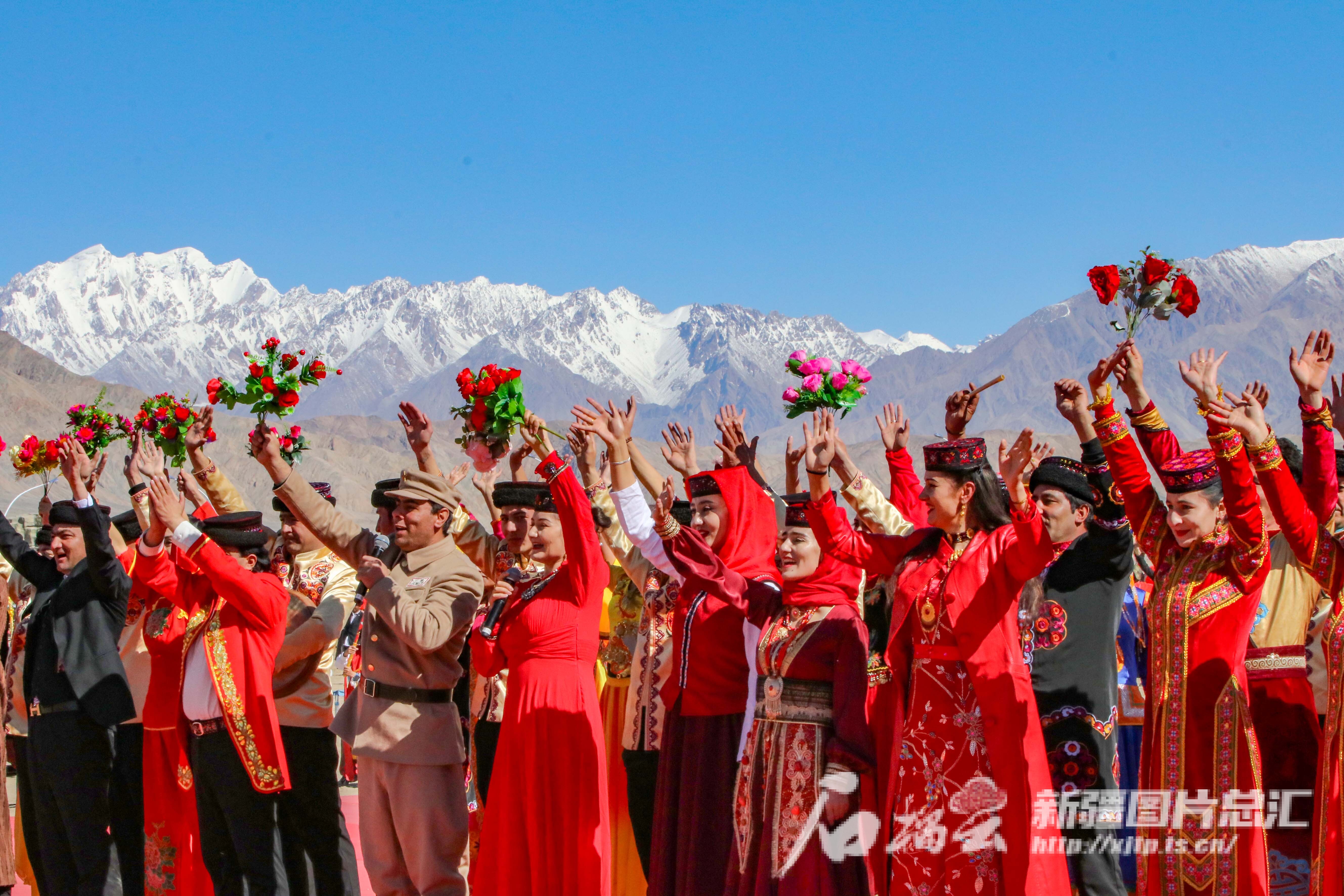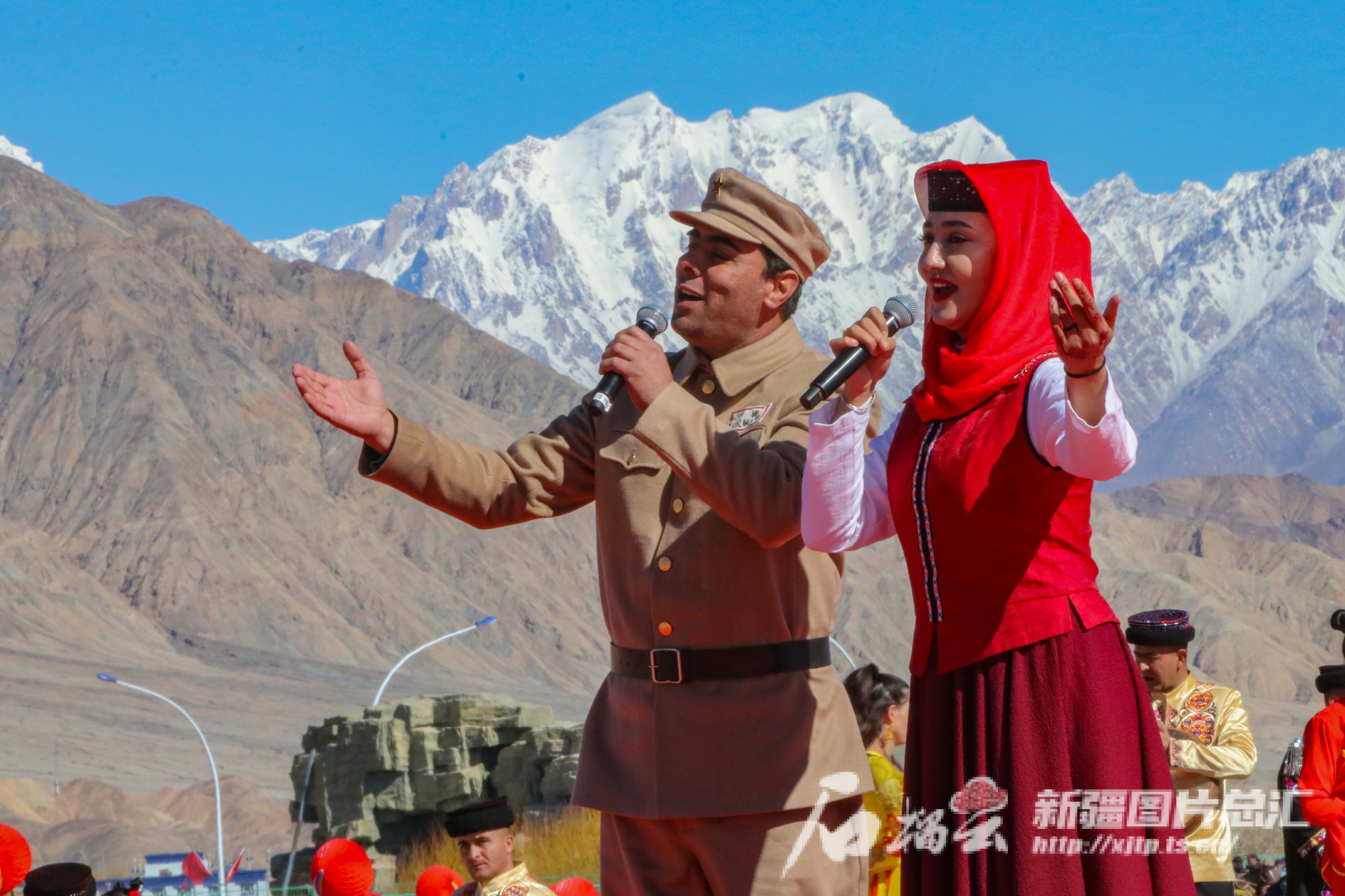 3月23日,在塔什库尔干塔吉克自治县非物质文化遗产展示园(提孜那甫乡赛马场)内,各族群众演唱《为祖国干杯》。