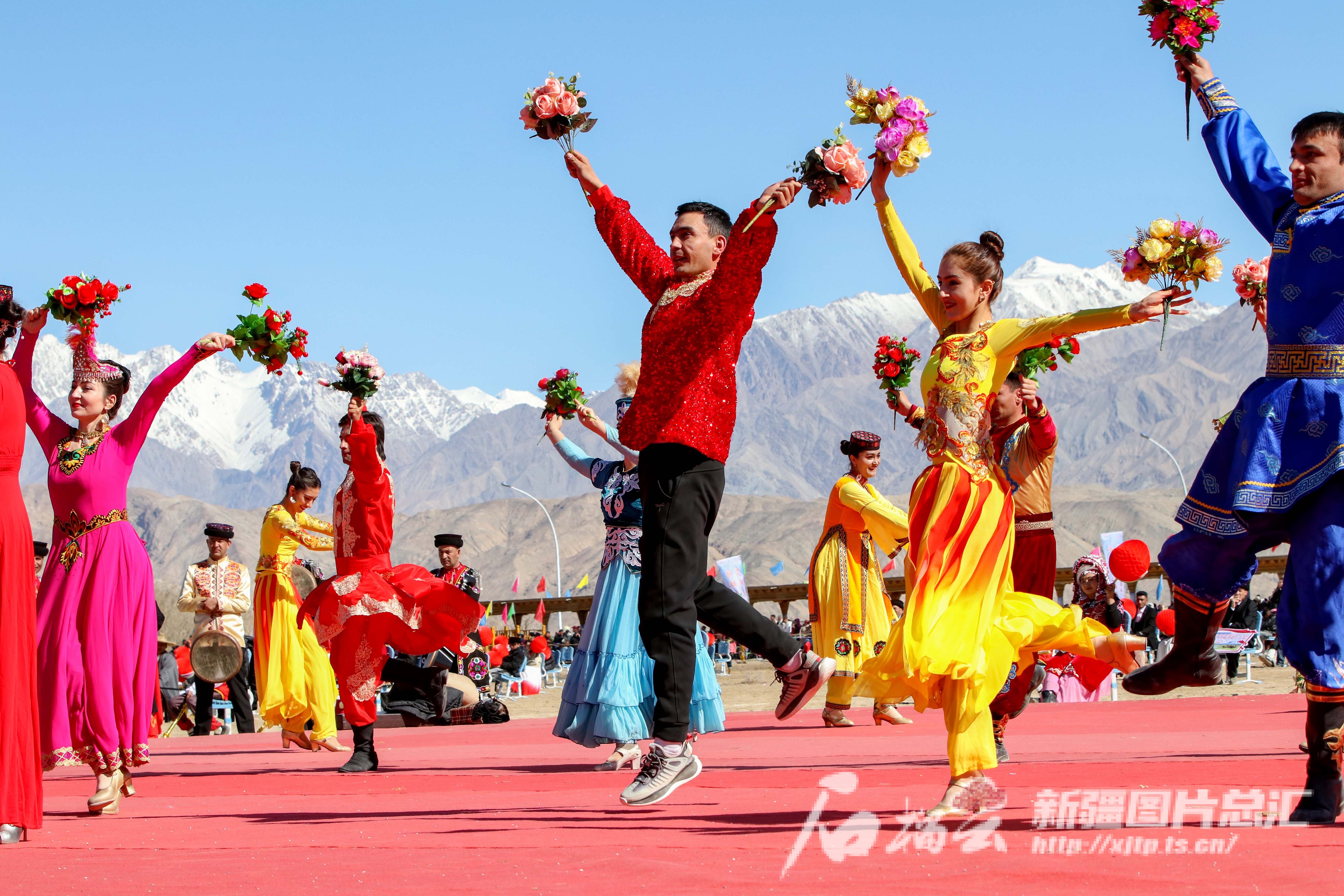 3月23日,演员在塔什库尔干塔吉克自治县非物质文化遗产展示园(提孜那甫乡赛马场)表演舞蹈。