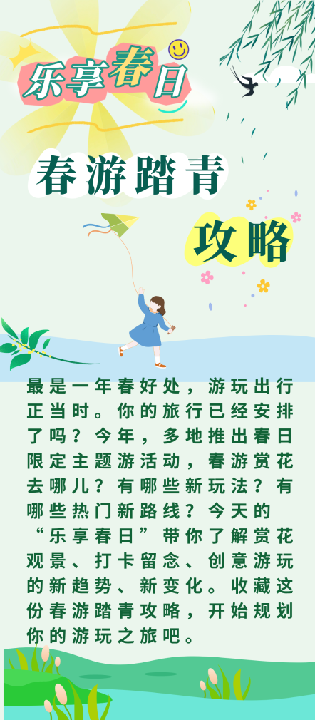 三月春意渐浓,春光愈好。时令尝鲜、赏花、踏青出游正当时。我们推出“乐享春日”系列,带大家看春色、品春意、识春趣。今天这一期聚焦春日出游地图,给大家带来实用攻略,一起追寻“诗和远方”吧!