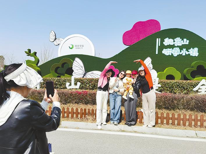 春风和煦,桃花摇曳,偌大的停车场满是旅游大巴、私家车,其中不乏湖南牌照的车辆。“现在的路修得又宽又美,我们从城区开车半小时就到了景区。”吴凤娇对湖北日报全媒记者说。说话间,几辆旅游专线车也陆续开到终点站,众多游客涌入景区。
