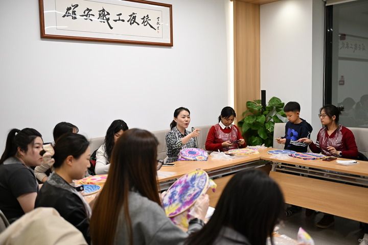 雄安新区职工夜校的学员在容东康宁雄观书屋内制作扎染(2025年3月14日摄)。新华社记者 牟宇 摄