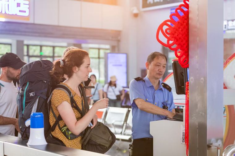 车站在站台增设隔离带,分批组织外籍游客排队候车,提高整体乘降效率。提前与越南团导游对接,动态掌握越南团到站时间、人数、乘坐车次,设立专用验证通道提前检票候车,确保外籍游客出行顺畅。