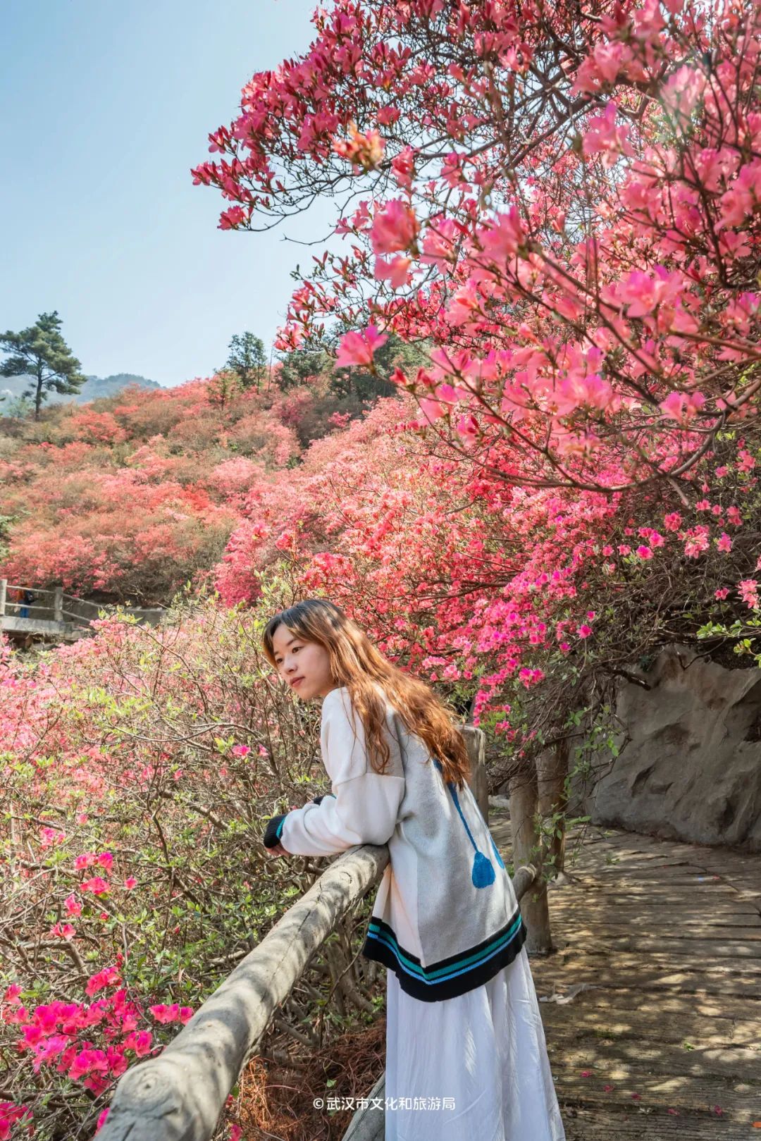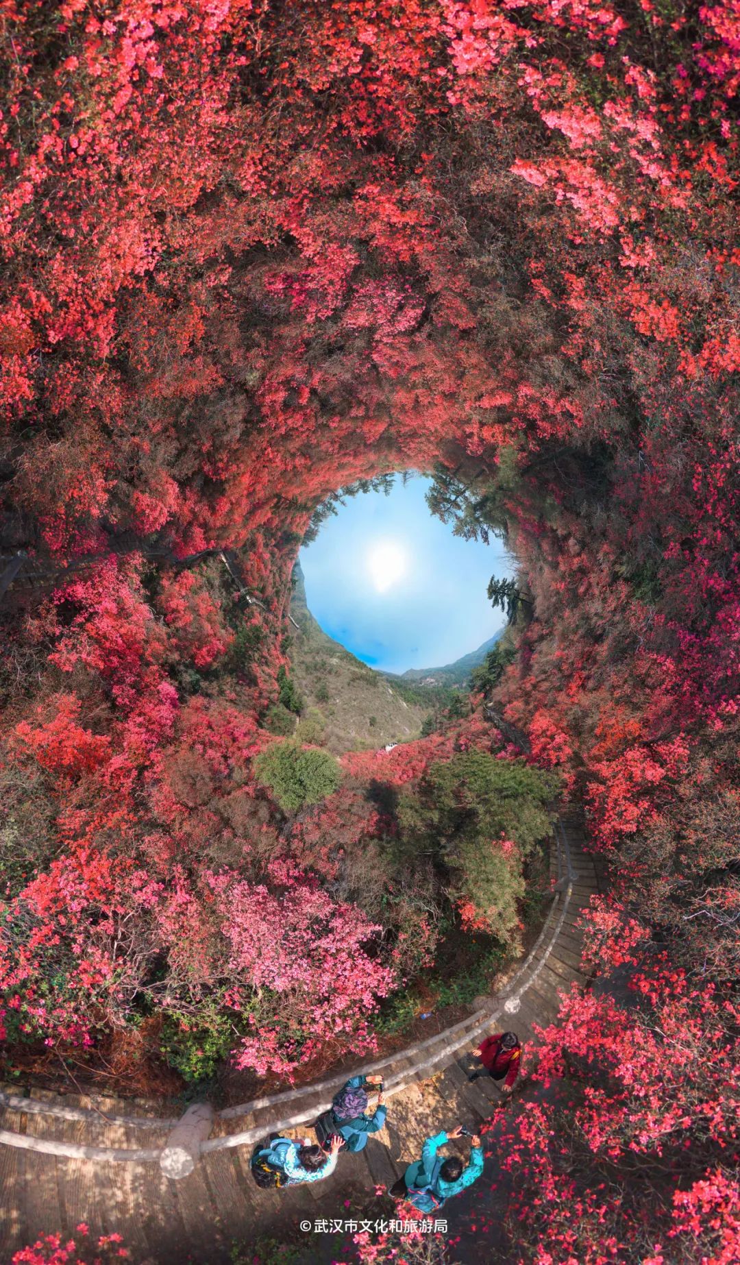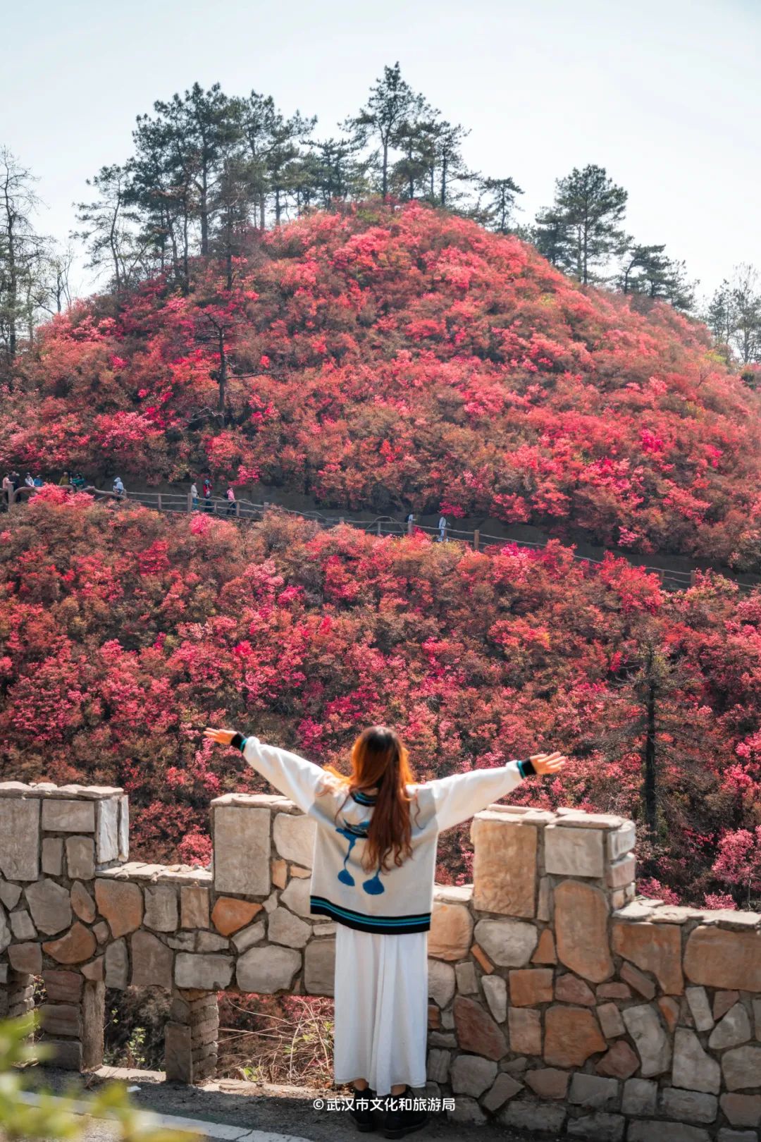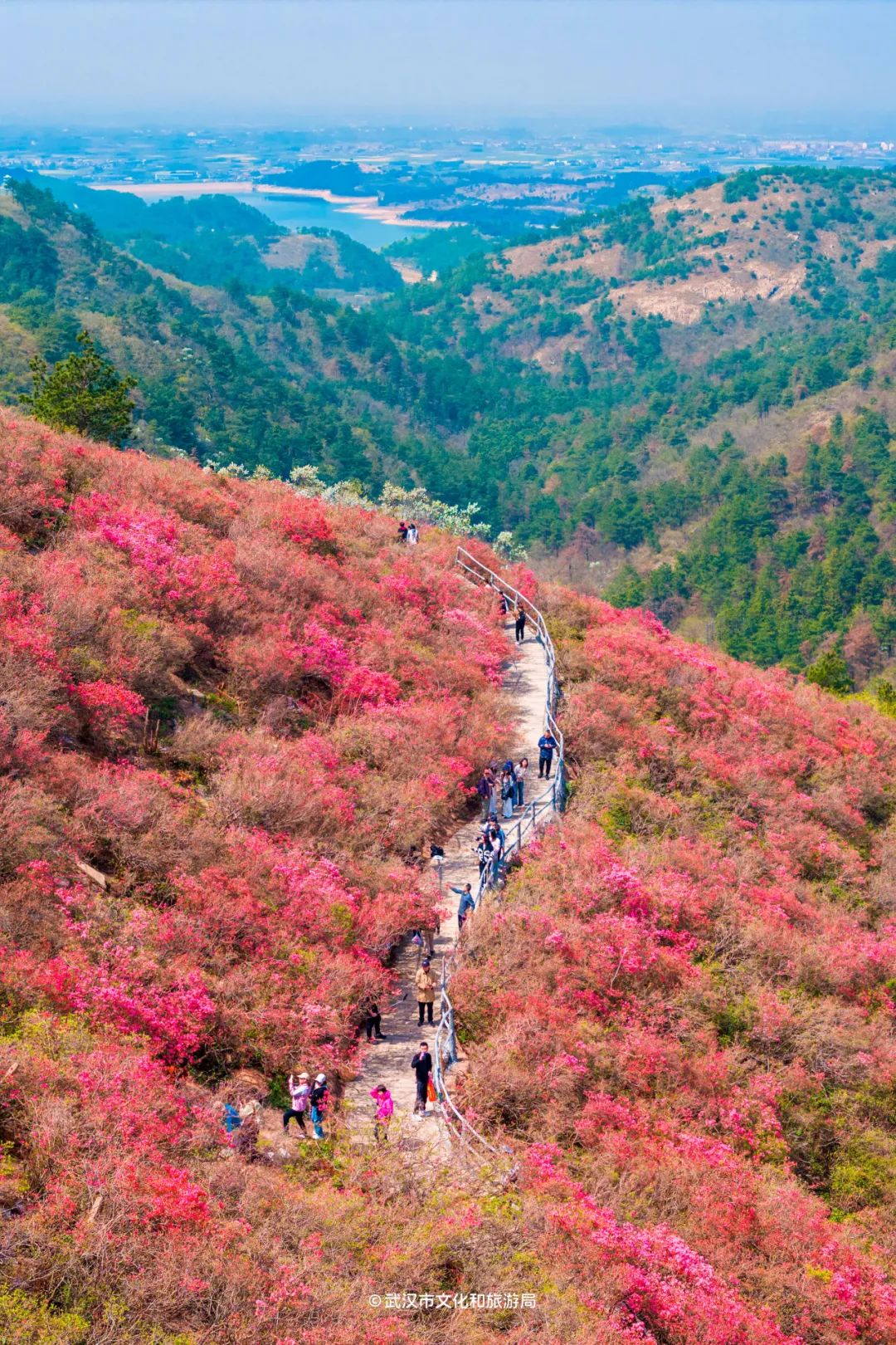 木兰云雾山位于武汉市黄陂区西北部,属大别山余脉,野生杜鹃花铺满3座山,因海拔不同,花开时间也不一样。