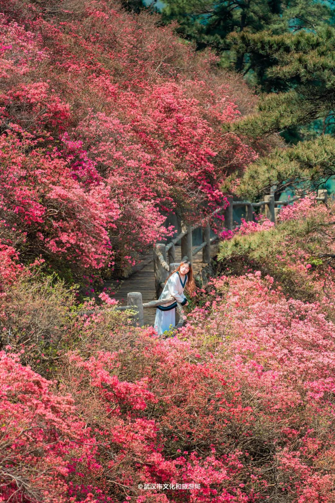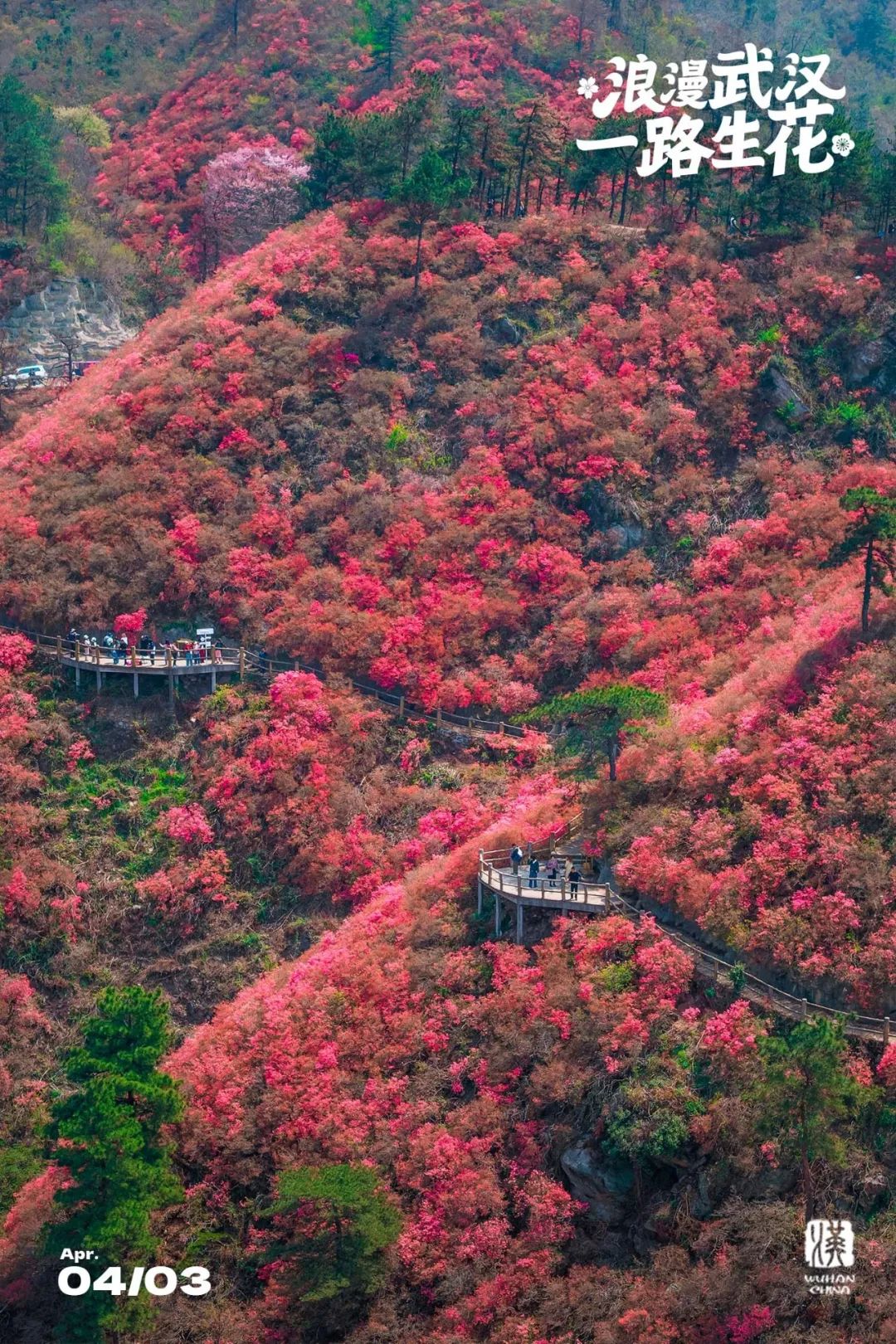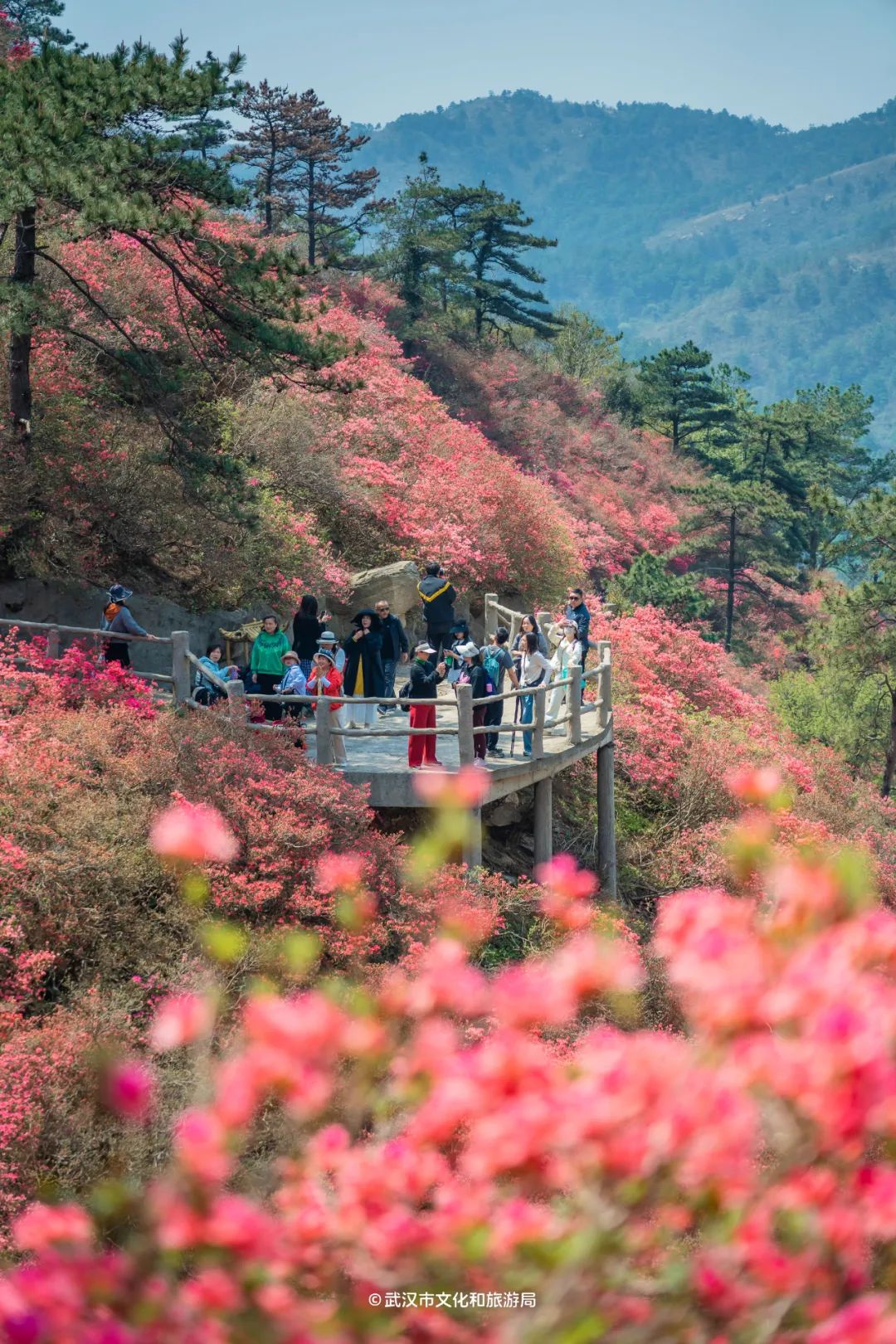 4月,武汉最盛大的花海——以“山头”计数的木兰云雾山杜鹃花迎来盛花期。