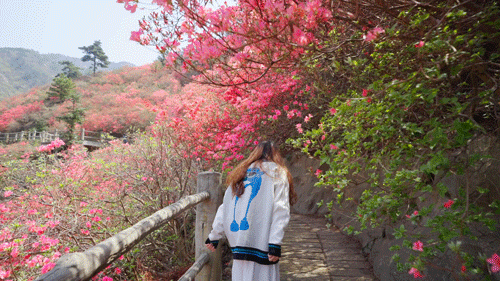 ③杜鹃花花枝较低,在山中花道游玩时,需弯腰前行