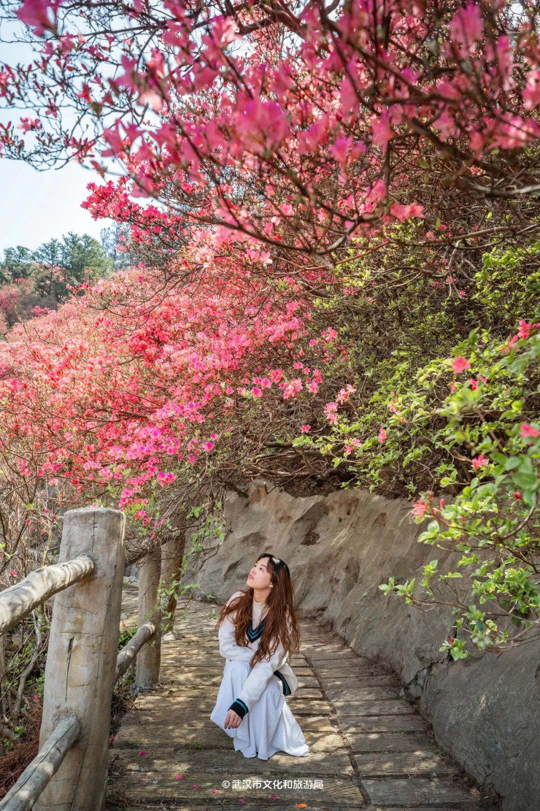 如果想试试轻徒步,你可以从景区入口步行到「花海」,慢走慢逛约1小时,沿途都是杜鹃花。(部分路段花枝较低,需弯腰前行)