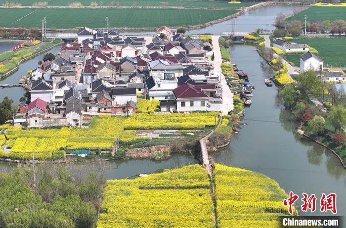 4月5日,江苏泰州,航拍位于姜堰区的特色田园乡村小杨村。(无人机照片) 中新社记者泱波摄
