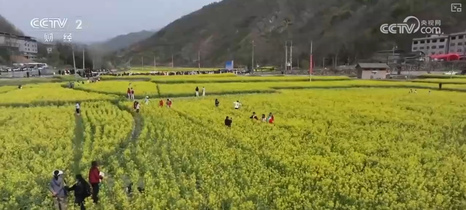 清明假期,湖北郧西县10万亩油菜花进入盛花期。“金色花海”与村庄、青山相映成趣,吸引游客在此拍照留念。郧西县天河景区悬鼓山桃花岭的千余亩桃林里也是游人如织。