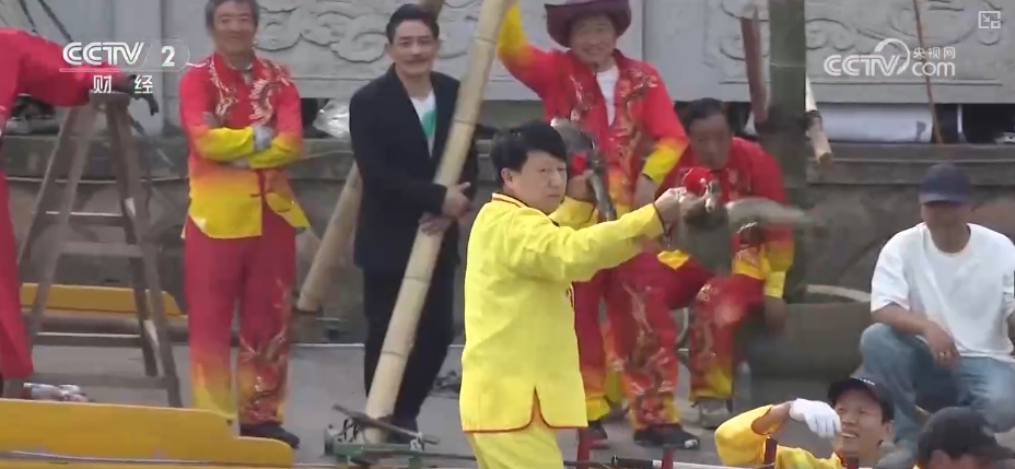 随后,便是每年“蚕花水会”的最热门项目——高杆船技展演。河面上,两根毛竹凌空飞架,高杆船技表演者爬到毛竹顶端,轮番上演高难度动作,时而翻滚,时而倒挂,每换一个动作,便引得岸上观众惊呼不已。