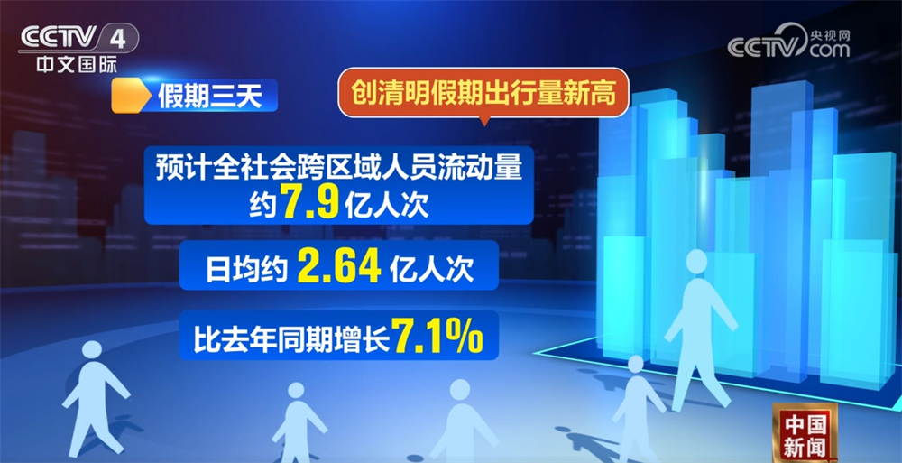 央视网消息:清明小长假已经结束,交通运输部统计数据显示,假期三天,预计全社会跨区域人员流动量约7.9亿人次,创清明假期出行量新高。一起来梳理一下今年清明假期出行的新变化。