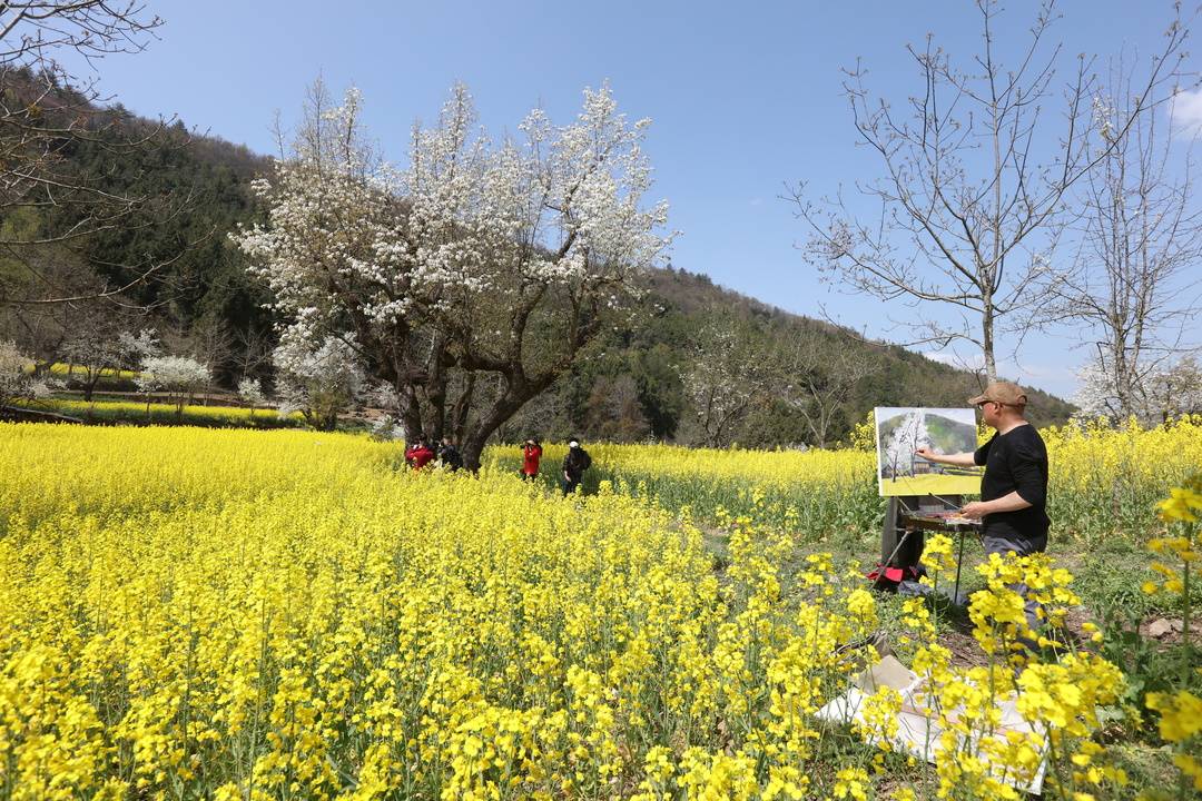 春日的万源,一片片花海如同大自然的调色盘,铺陈出一幅幅春日画卷,不仅吸引市民游客纷至沓来,更成为四川万源“赏花经济”蓬勃兴起的生动写照。在长坝镇铜草湾村的百亩梨园内,一朵朵梨花竞相绽放,散发出沁人心脾的芳香,勾勒出一幅绚丽的春光图;在白沙镇猫儿坝村,千亩油菜花绘就春日盛景,游客伴随欢快的舞龙锣鼓声穿越金黄花田,尽享春天特有的浪漫。